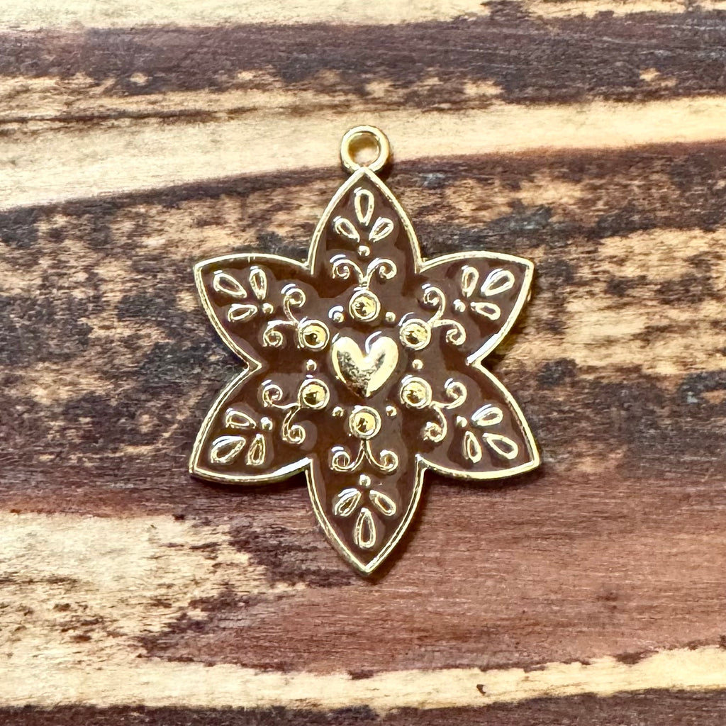 BCB-1188 - Gold Enamel Pendant, Star With Heart, Cocoa, 23x29mm | Pkg 1