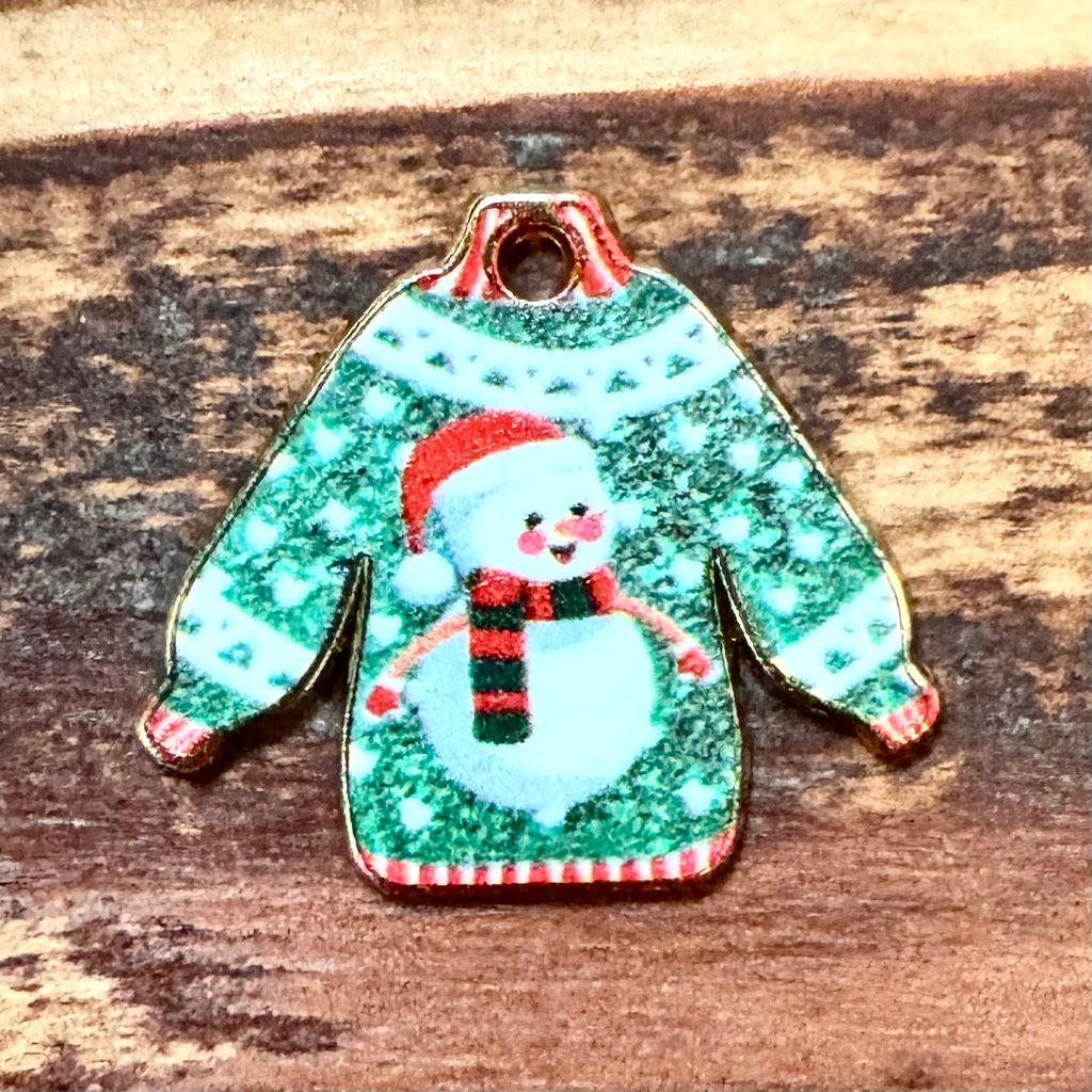 BCB-1190 - Gold Pendant, Ugly Christmas Sweater, Snowman, 23x20mm | Pkg 1