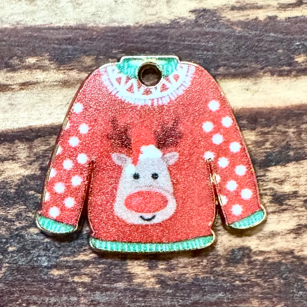 BCB-1191 - Gold Pendant, Ugly Christmas Sweater, Rudolph, 23x20mm | Pkg 1