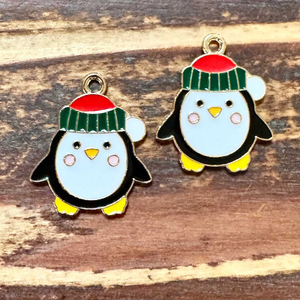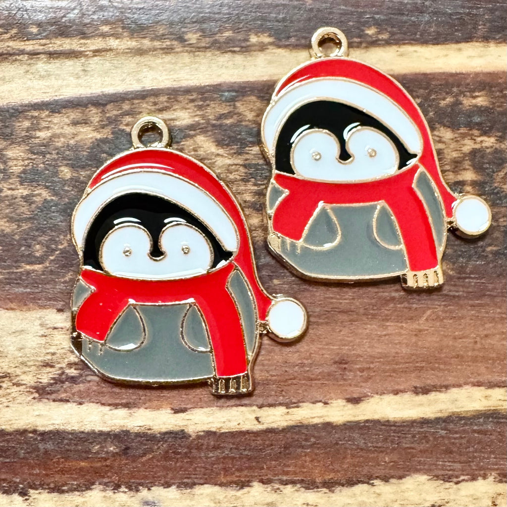 BCB-1195 - Gold Enamel Pendant, Penguin With Santa Hat, 24x28mm | Pkg 2