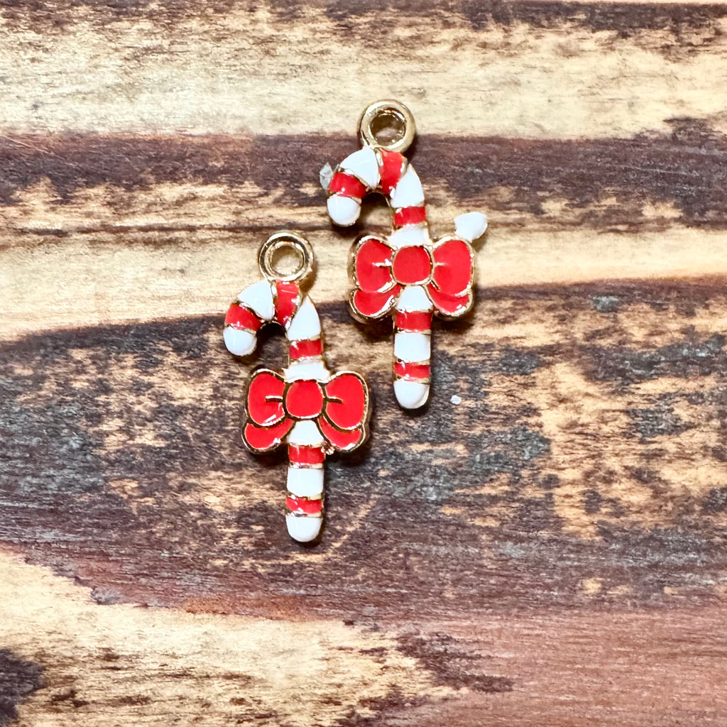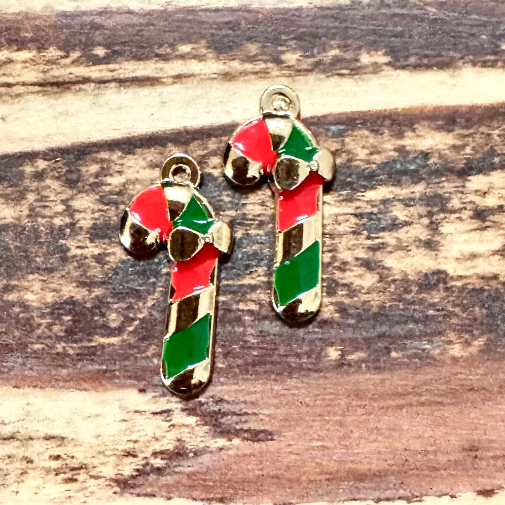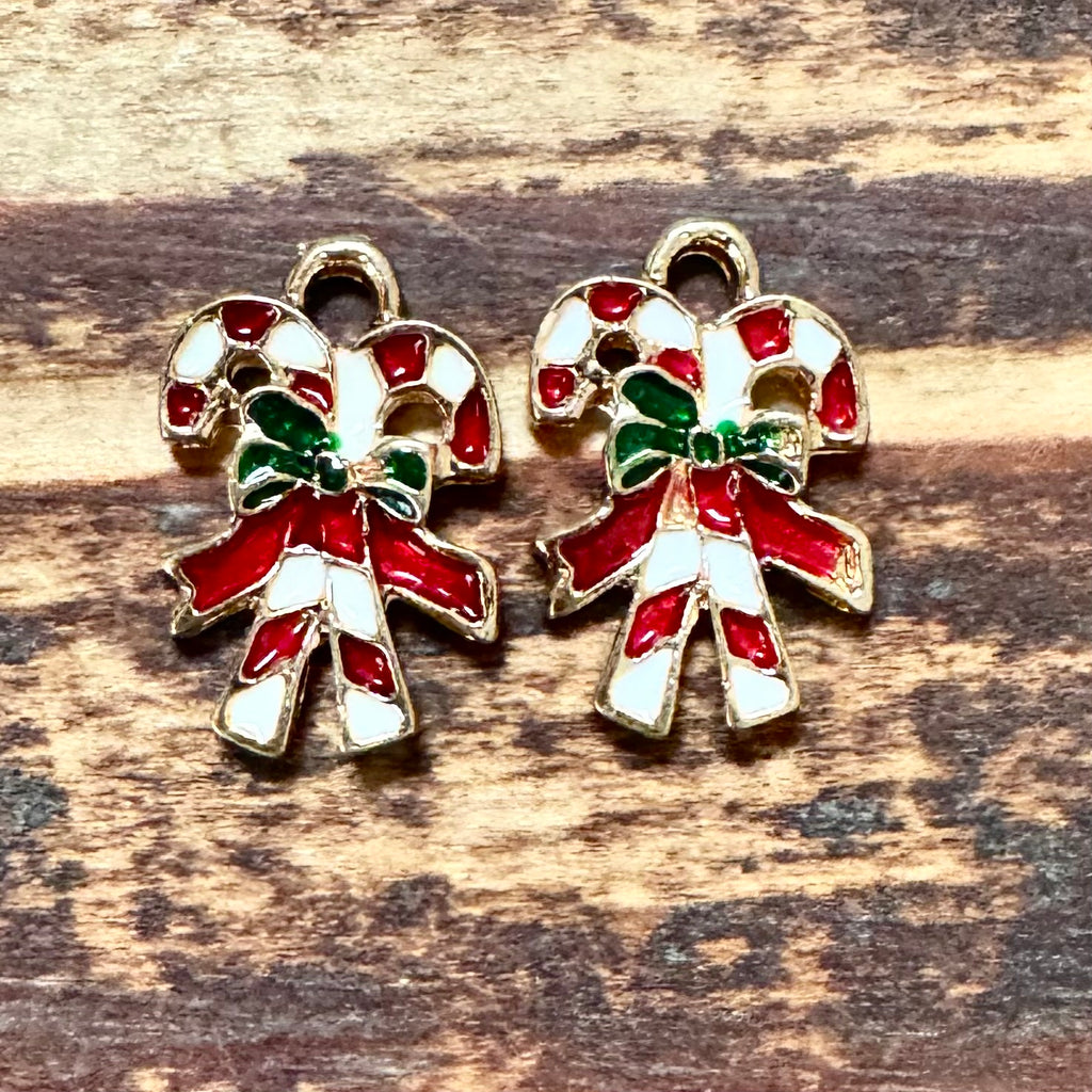 BCB-1216 - Gold Plated Enamel Double Candy Canes, 17x11mm | Pkg 2