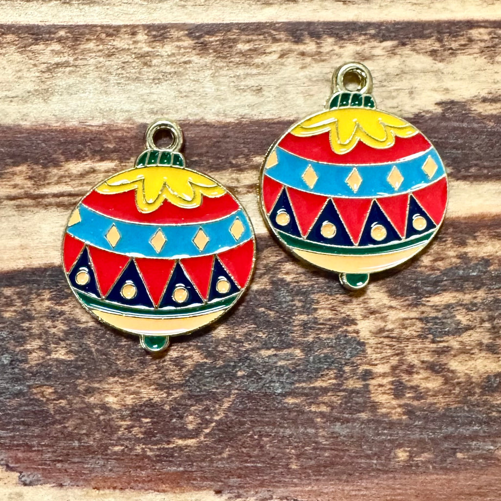 BCB-1199 - Gold Enamel Pendant, Striped Ornament, 18x21mm | Pkg 2