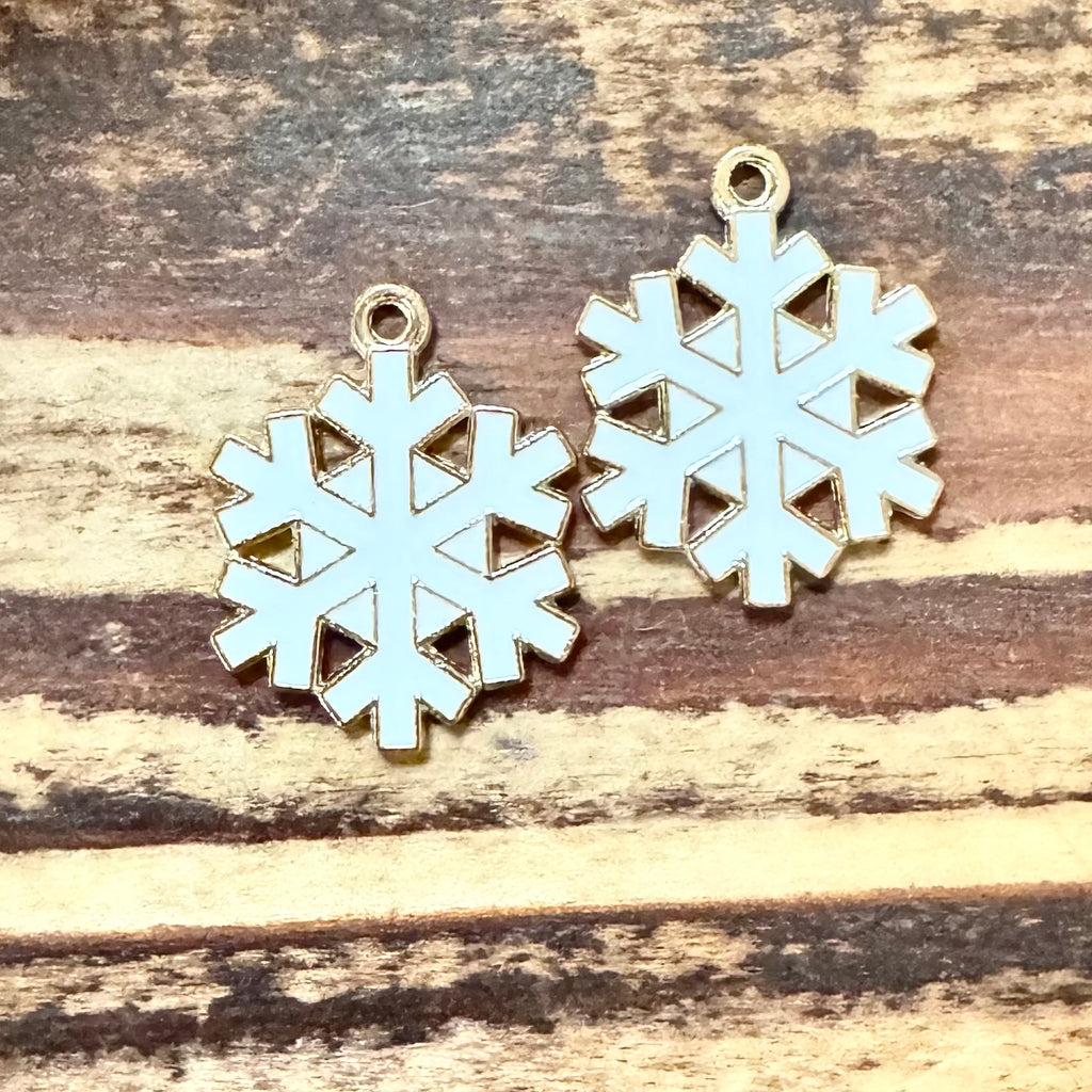 BCB-1205 - Gold Plated Enamel Snowflake, White, 17x21mm | Pkg 2
