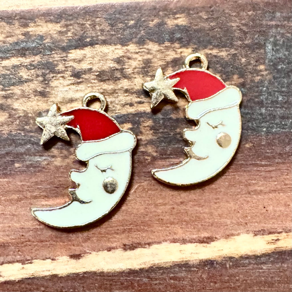 BCB-1210 - Gold Plated Enamel Man In The Moon With Santa Hat, 17x14mm | Pkg 2