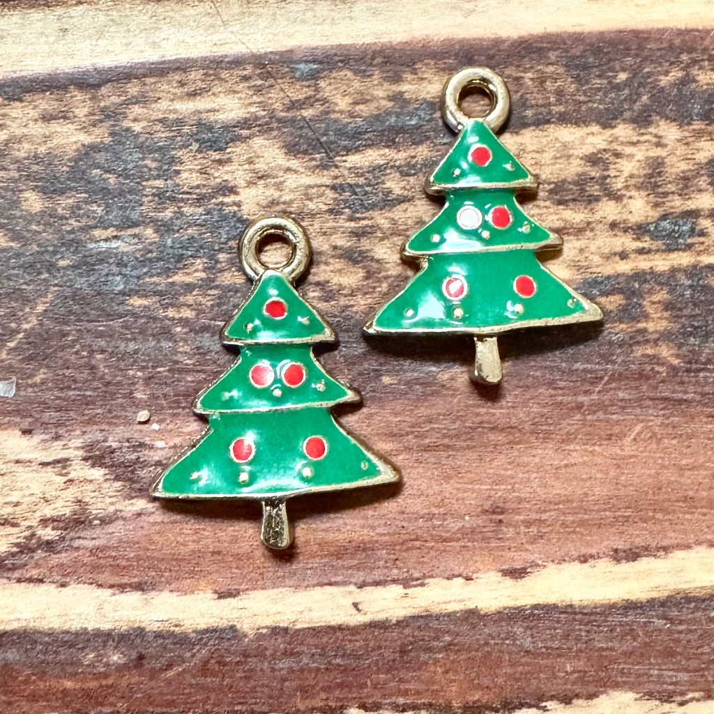 BCB-1213 - Gold Plated Enamel Tree, Green With Red Balls, 15x19mm | Pkg 2