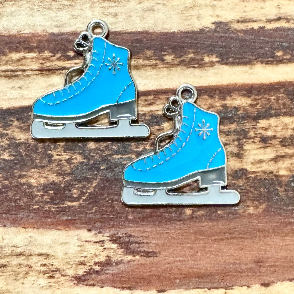 BCB-1214 - Silver Plated Enamel Ice Skates, Blue, 20mm | Pkg 2