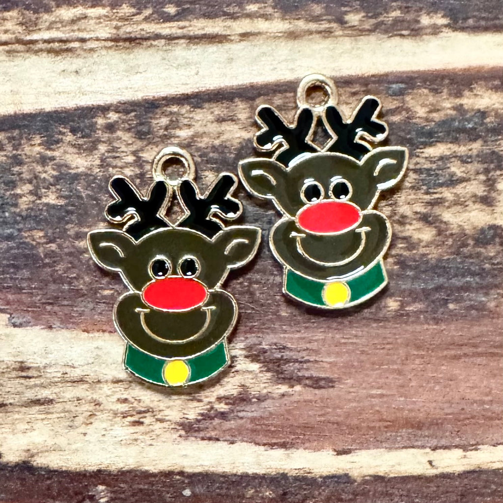BCB-1219 - Gold Plated Enamel Rudolph With Green Collar, 15x21mm | Pkg 2