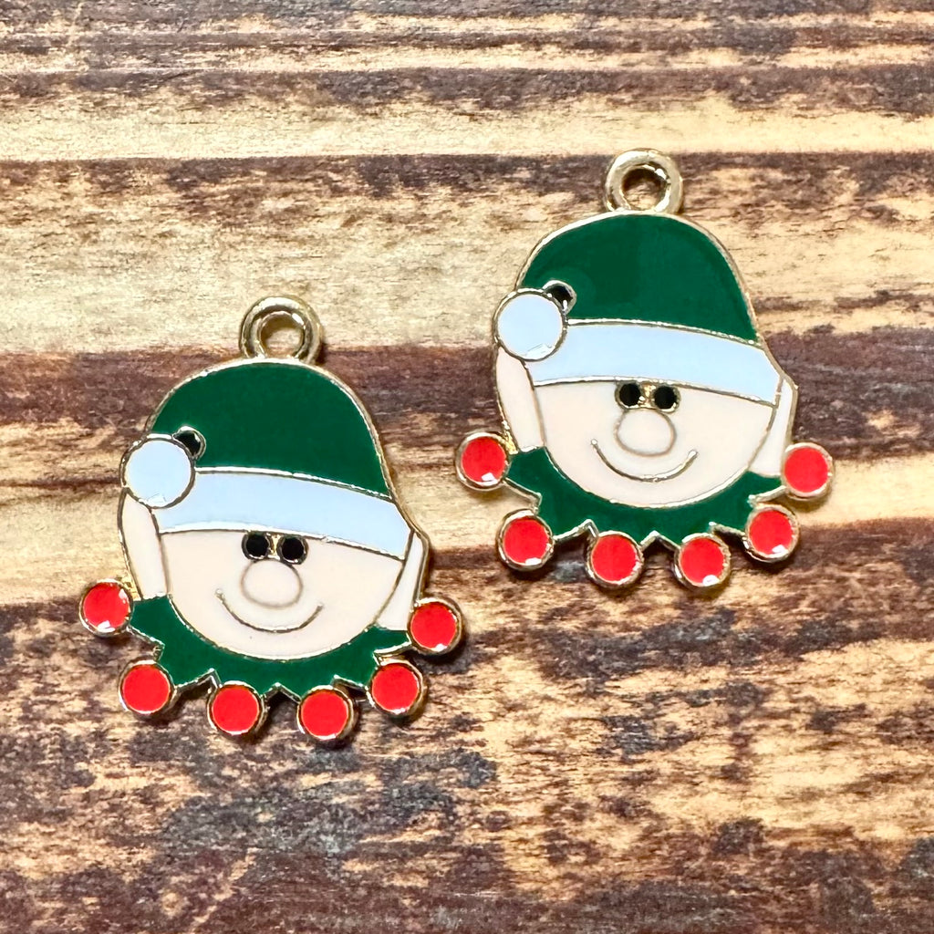 BCB-1280 - Gold Plated Enamel Pendant, Fancy Christmas Elf, 18x21mm | Pkg 2