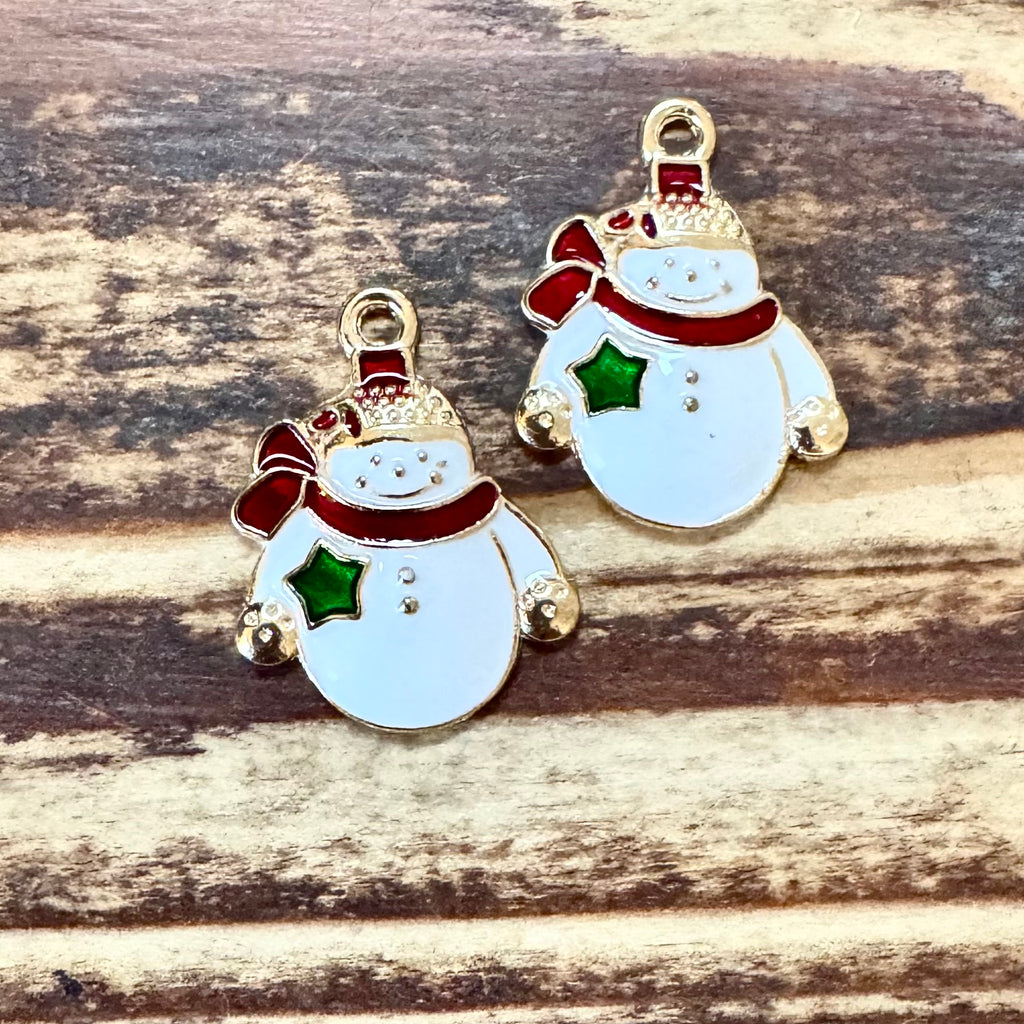BCB-1372 - Gold Enamel Snowman Pendant With Star, 22x16mm | Pkg 2