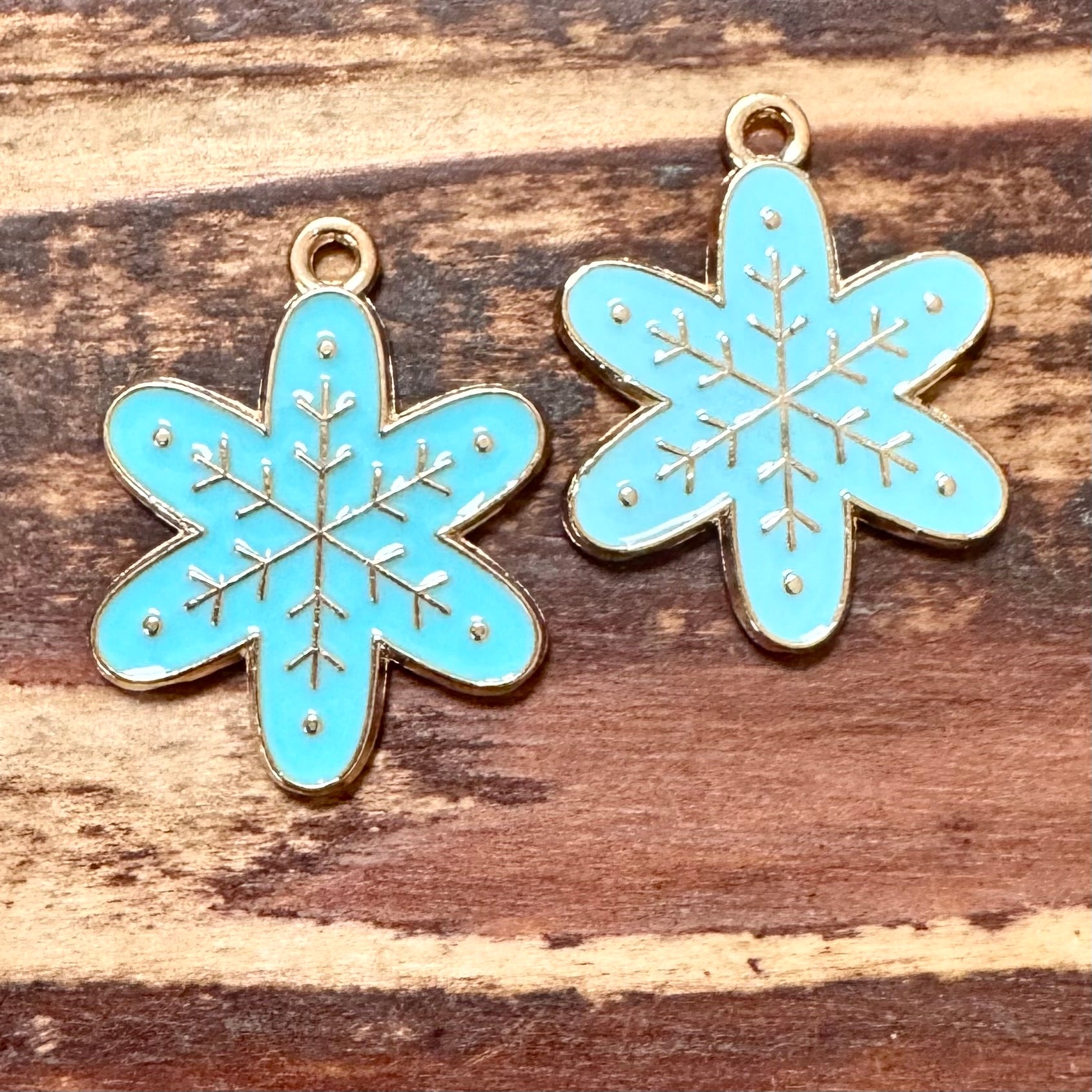 BCB-1194 - Gold Enamel Pendant, Blue Snowflake, 19x21mm | Pkg 2