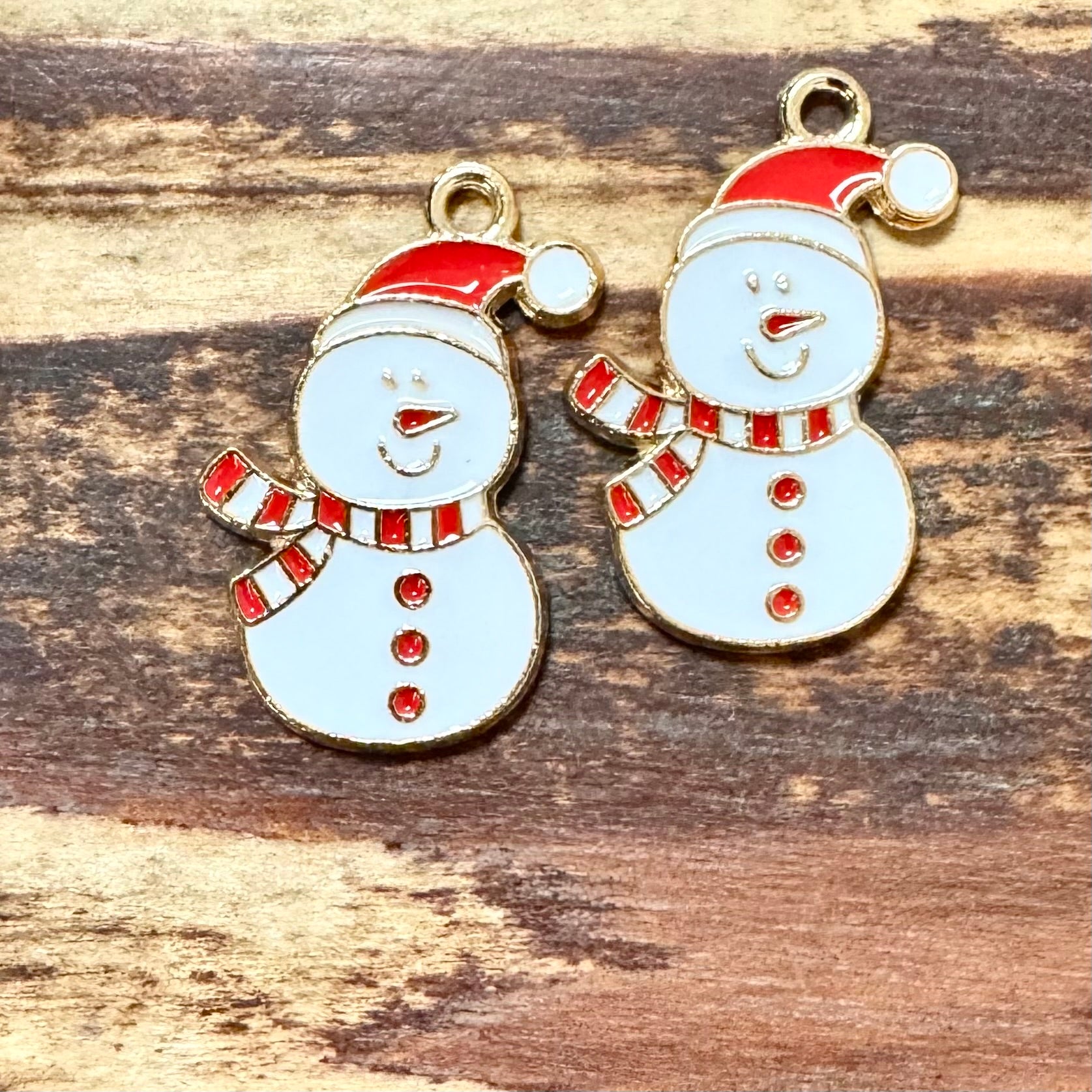 BCB-1196 - Gold Enamel Pendant, Snowman With Striped Scarf, 15x24mm | Pkg 2