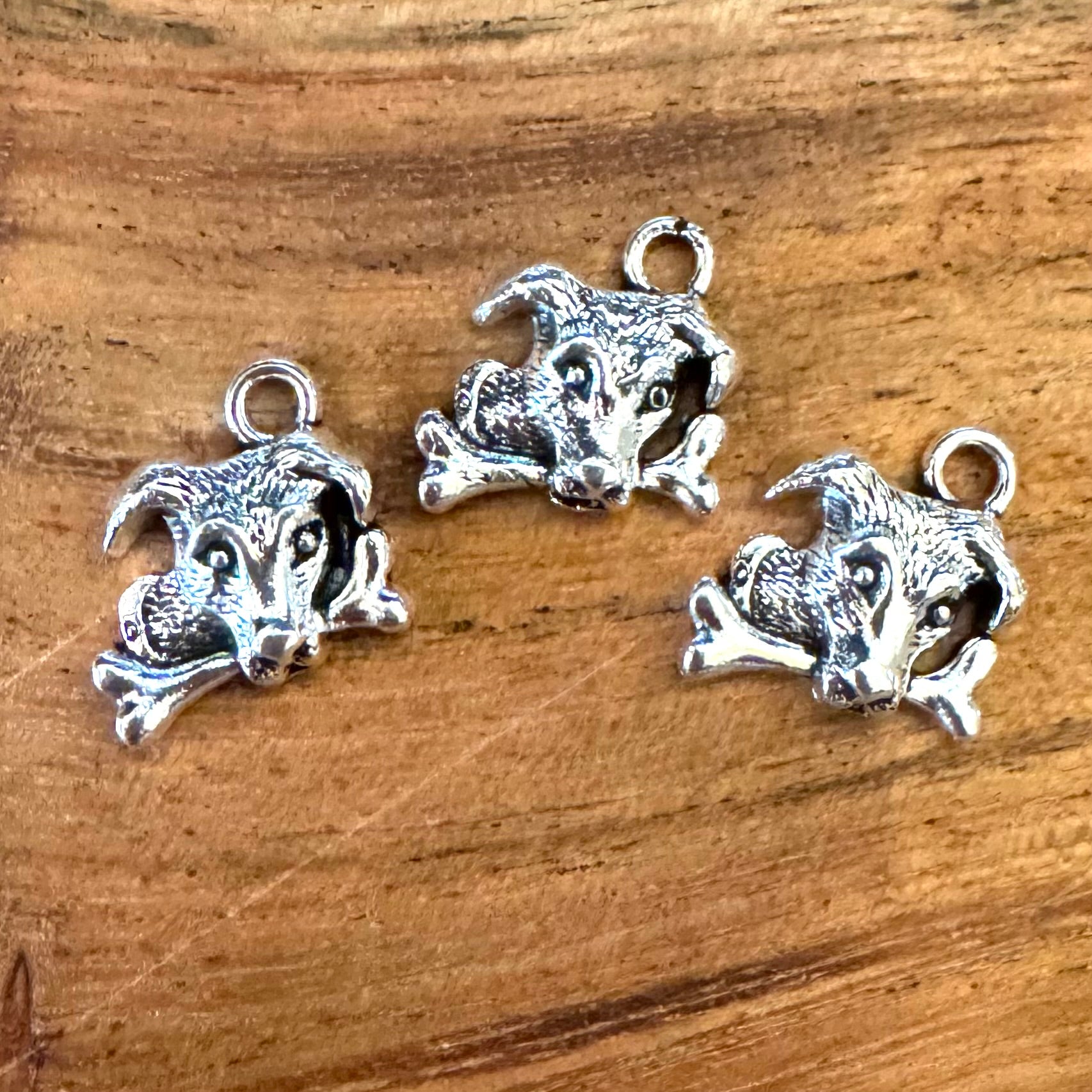 BCB-1913 - Antique Silver Dog With Bone Charms, 14x15mm | Pkg 3