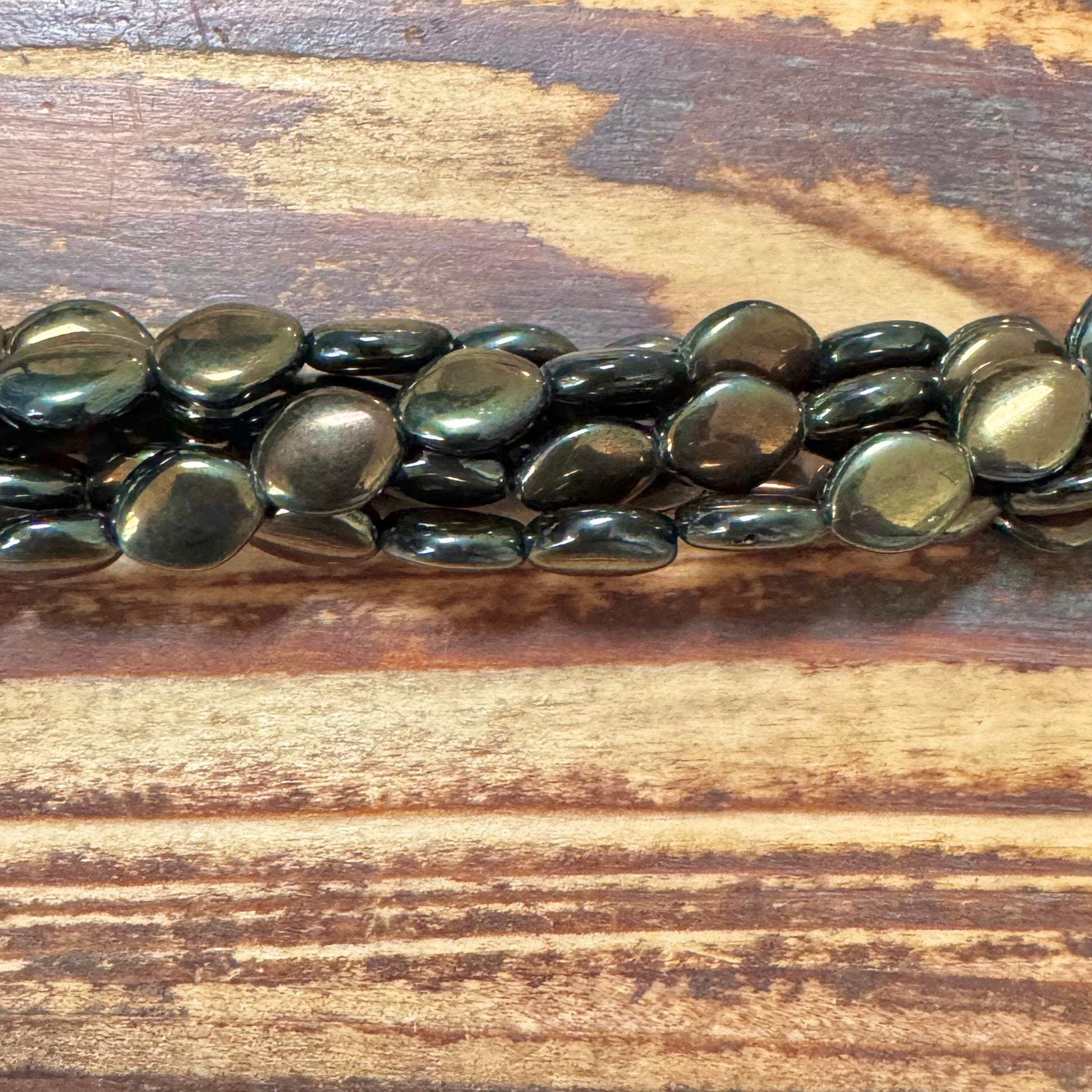 JKB-0872 - Czech Glass Oval Beads, Fools Gold, 8x10mm | Strand