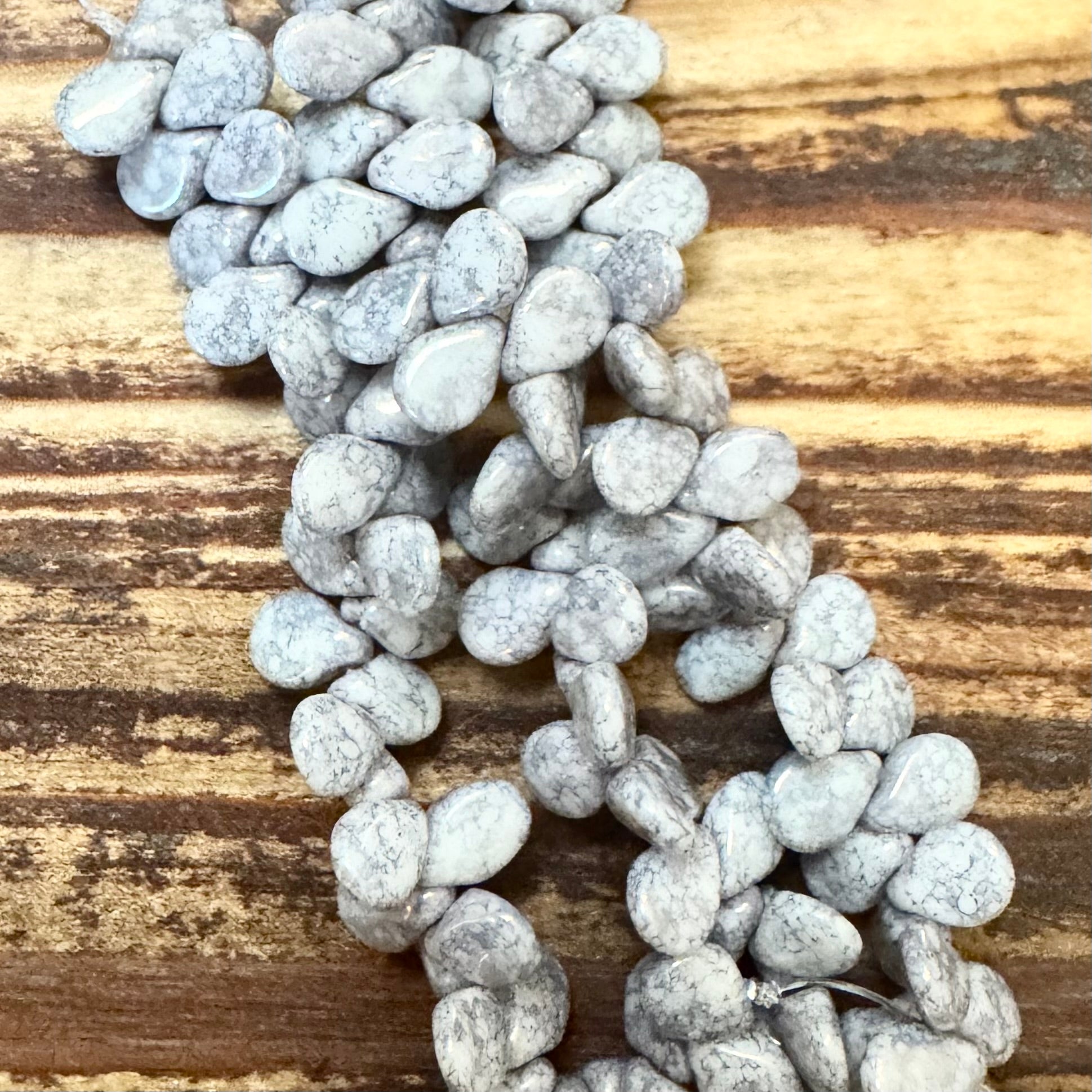 JKB-1081 - Czech Glass Teardrop Beads, Gray Marble, 5x7mm | Strand