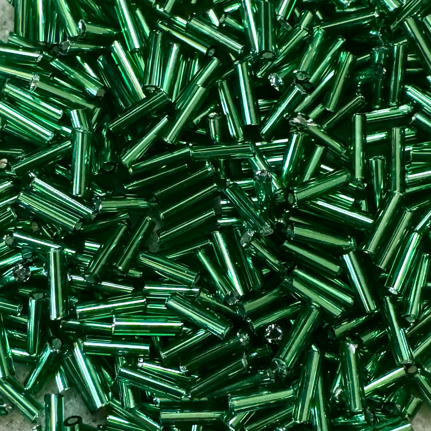 JKB-1135 - Glass Tube Beads, Emerald, 2x7mm | Pkg 16 Grams
