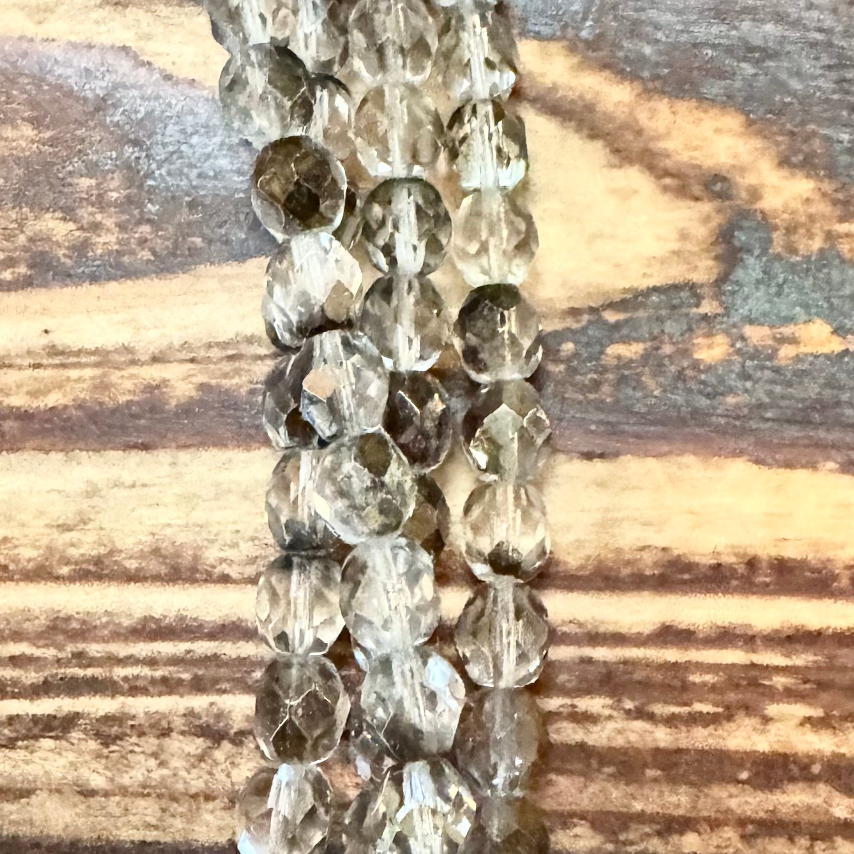 JKB-1184 - Czech Glass Fire Polish Beads, Crystal Brown, 7mm