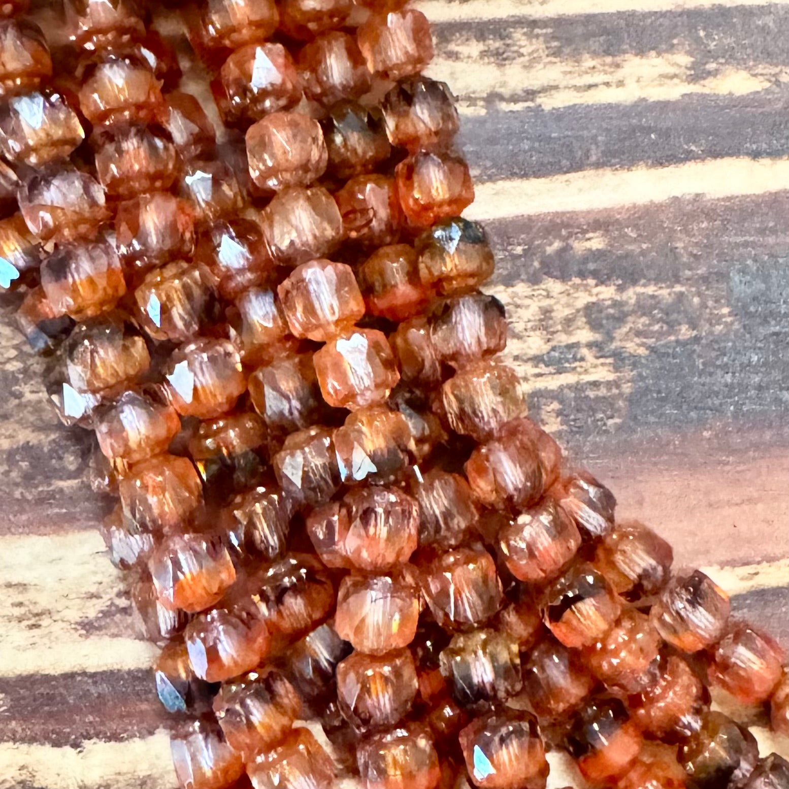 JKB-0842 - Czech Glass Faceted Cathedral Bead, Pumpkin-Copper, 6mm | Strand