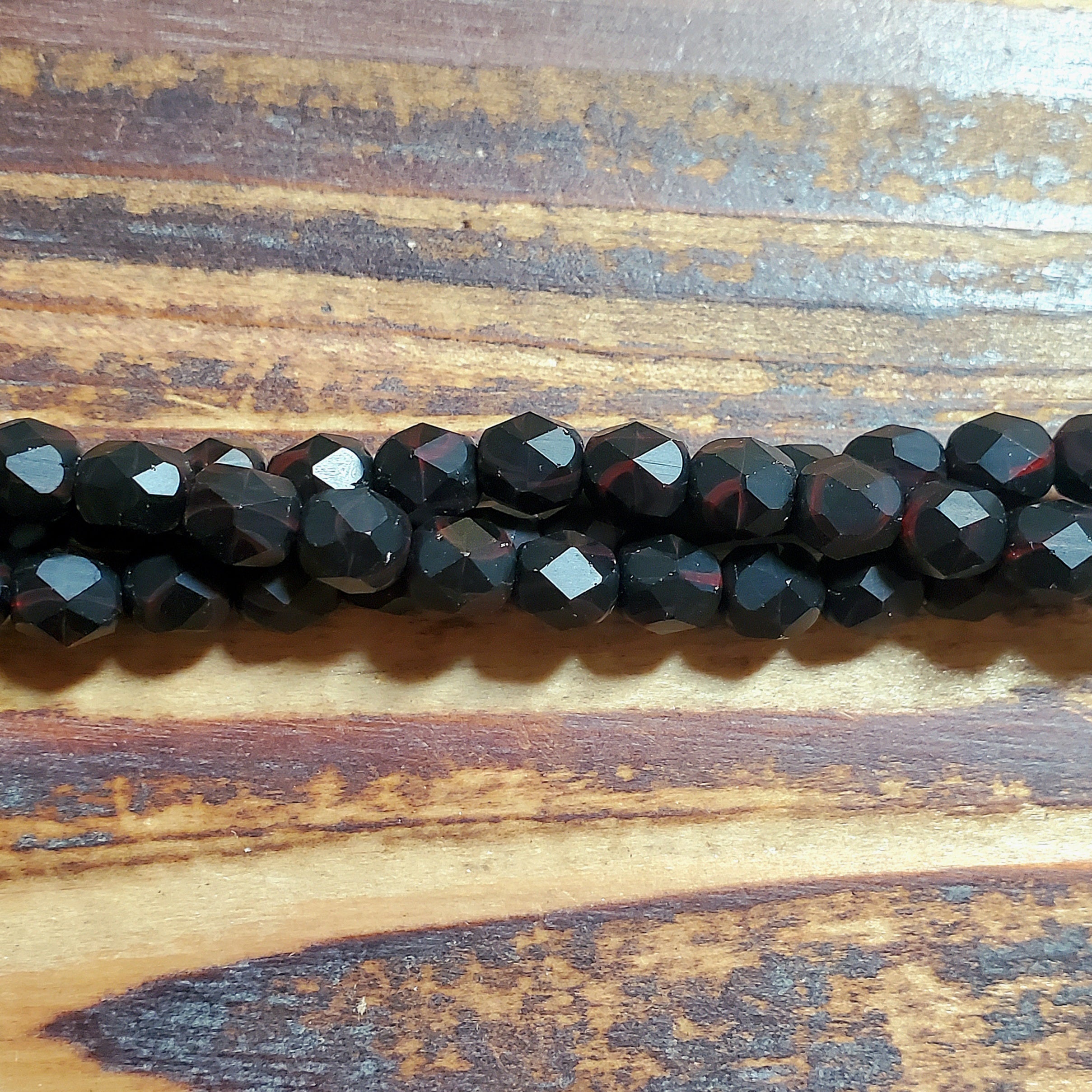 JKB-0690 - Czech Glass Fire Polish Beads, Matte Jet, 6mm | Strand