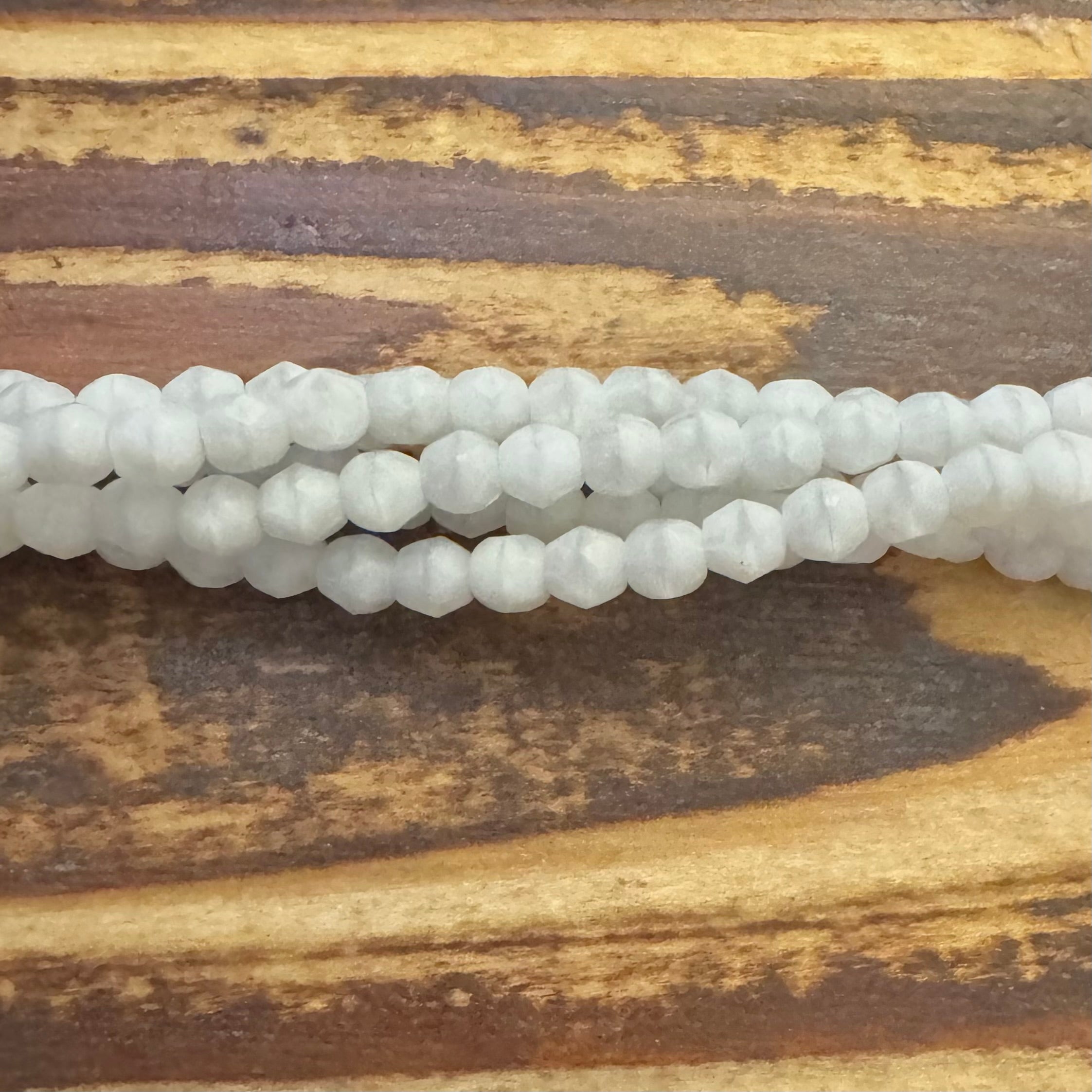 JKB-0778 - Czech Glass Fire Polish Beads, Matte Opaque Light Gray, 4mm | Strand