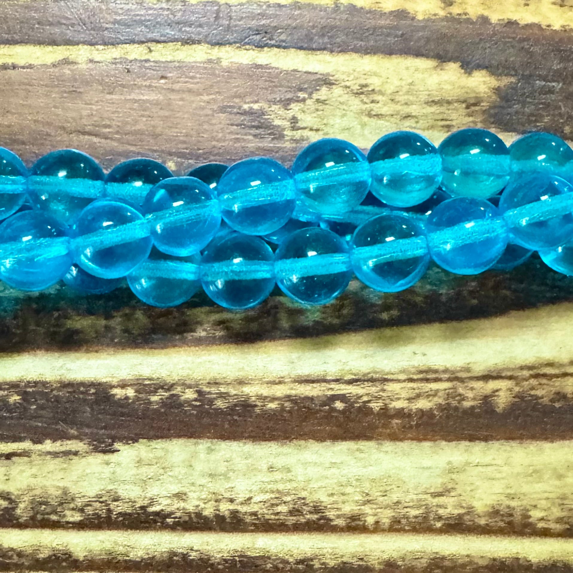 JKB-0829 - Czech Glass Round Beads, Aqua, 8mm | Strand