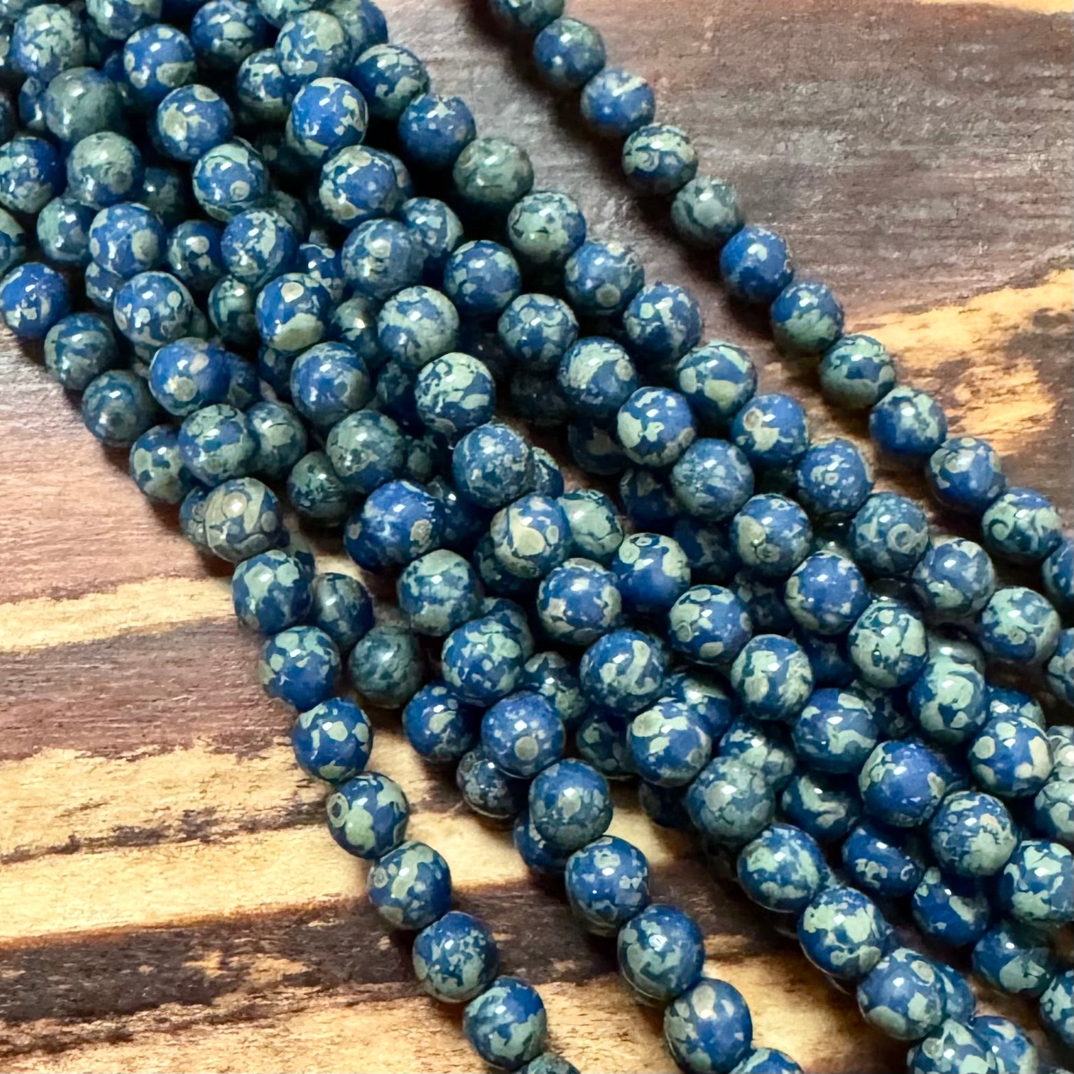 JKB-0835 - Czech Glass Round Beads, Azurite, 4mm | Strand