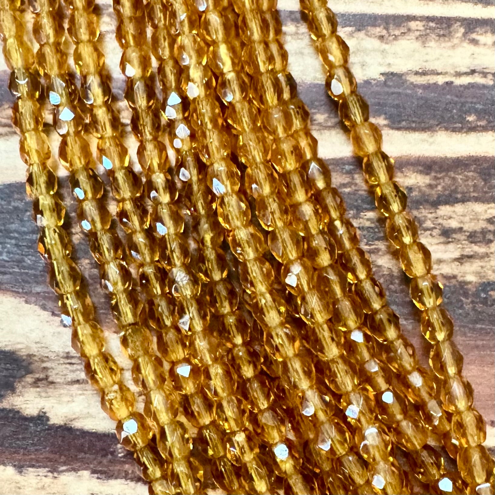 JKB-0838 - Czech Glass Fire Polish Beads, Topaz, 4mm | Strand