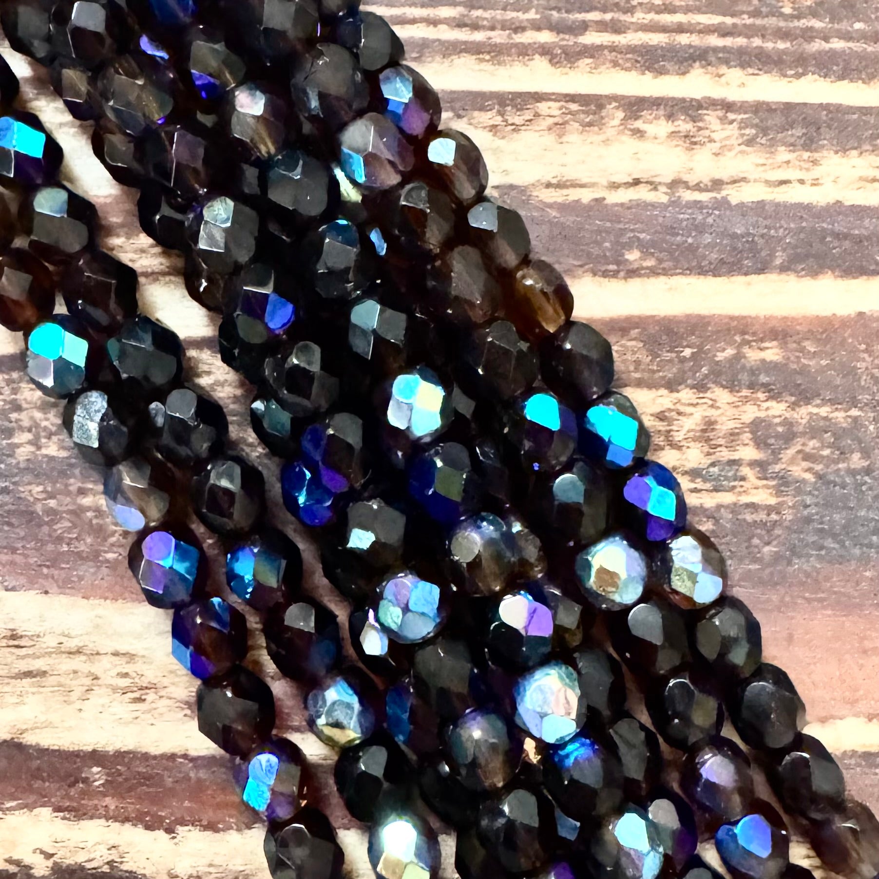 JKB-0840 - Czech Glass Fire Polish Beads, Multi Metallic, 6mm | Strand
