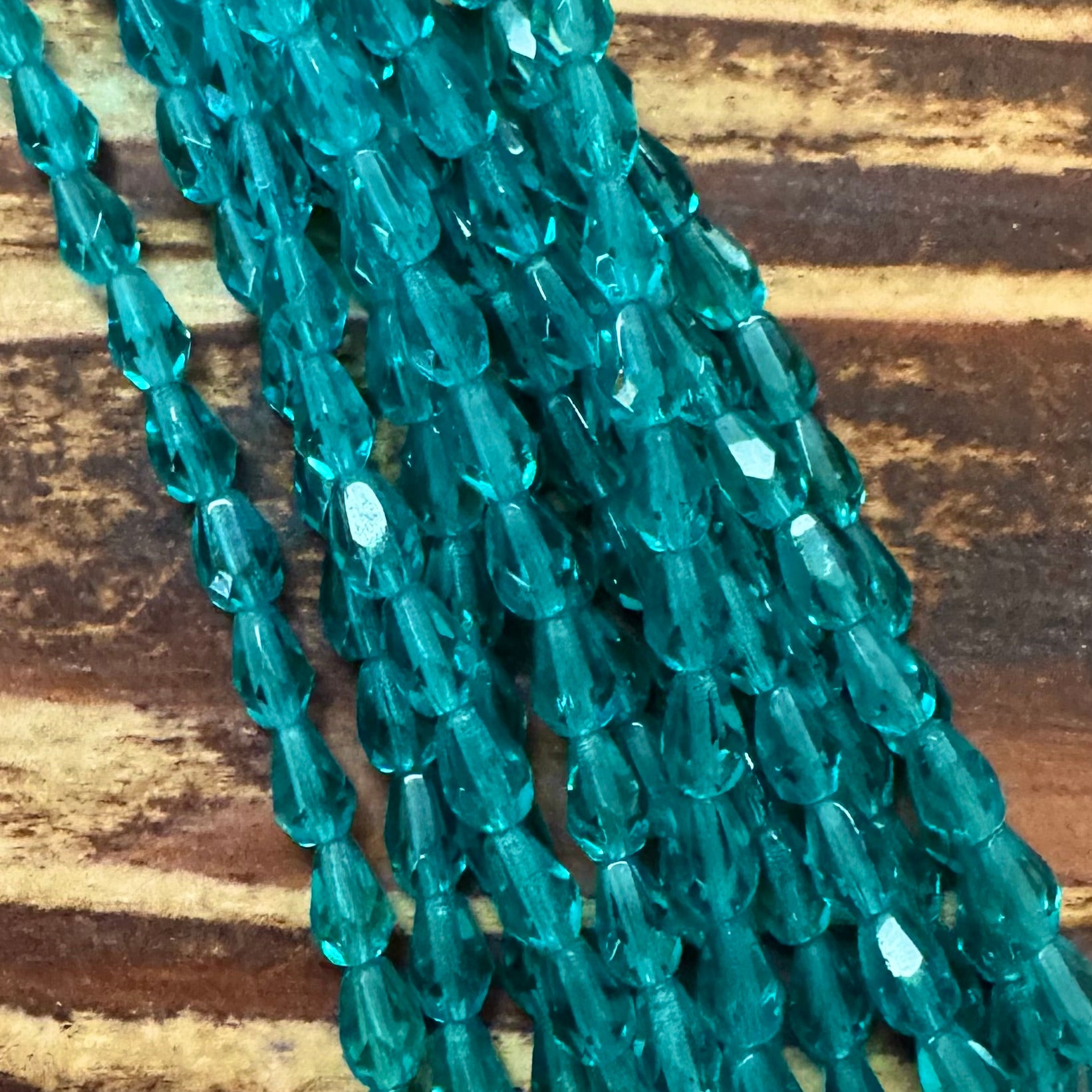 JKB-0841 - Czech Glass Faceted Teardrop Bead Strand, Teal, 4x7mm | Strand