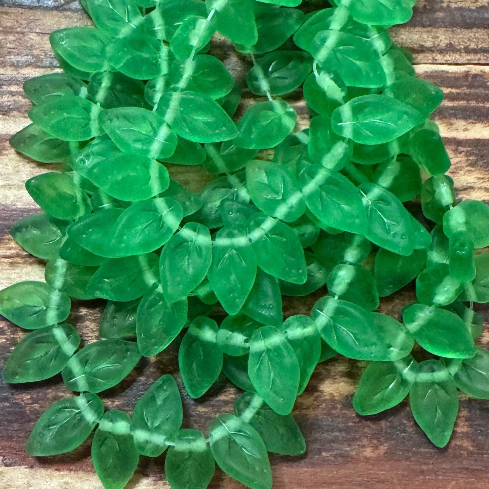 JKB-0844 - Czech Glass Leaft Beads, Matte Green, 6x10mm | Strand