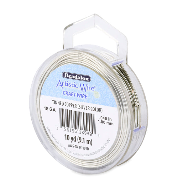 AWS-18-TC-10YD - Tinned Copper Artistic Wire, Tarnish Resistant, 18 Gauge, Silver | 10 Yards