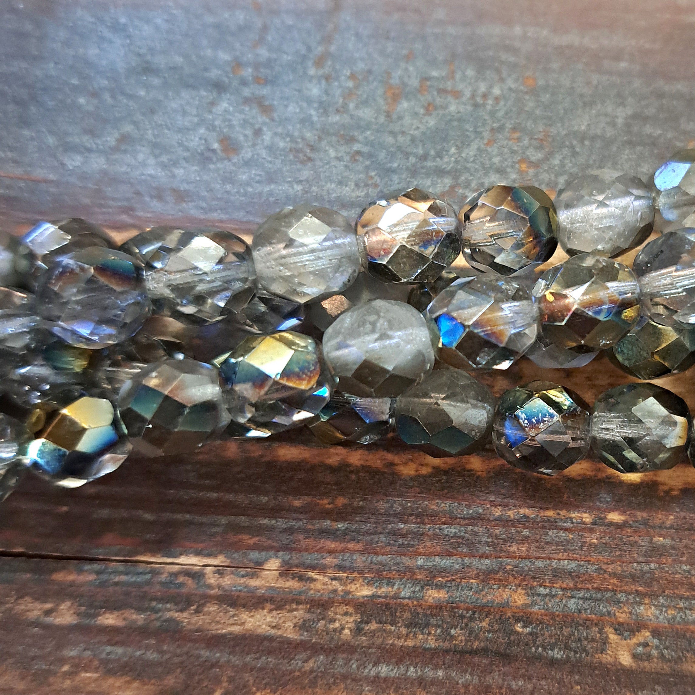 JK-6404 - Czech Glass Fire Polish Beads, Milky Metallic, 8mm | Strand