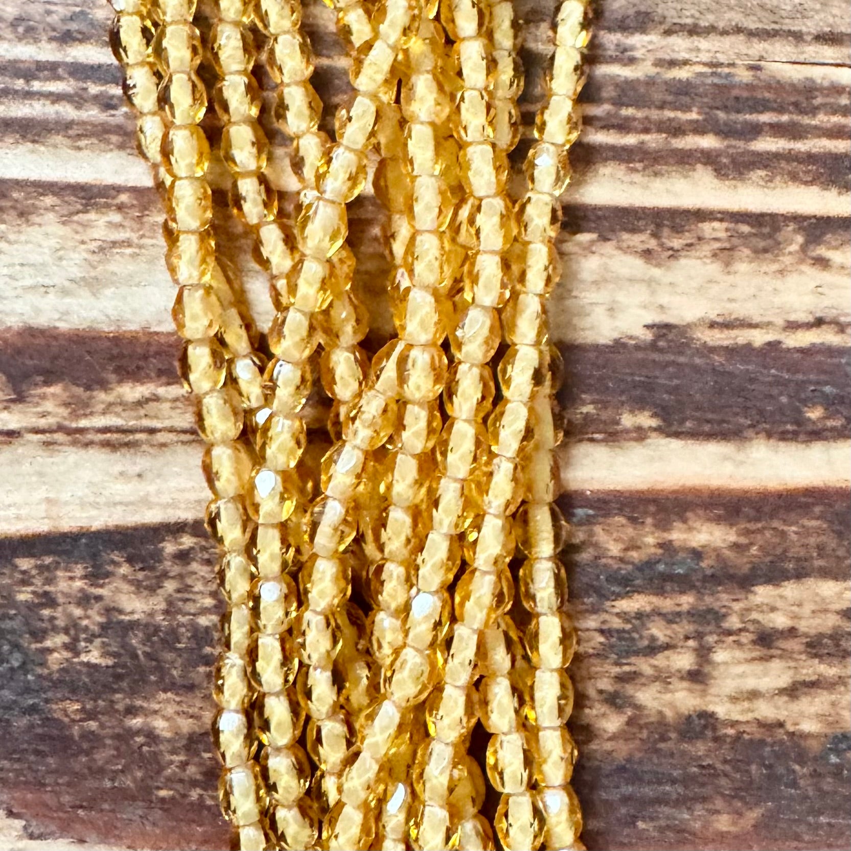 JKB-0847 - Czech Glass Fire Polish Beads, Topaz, 3mm | Strand