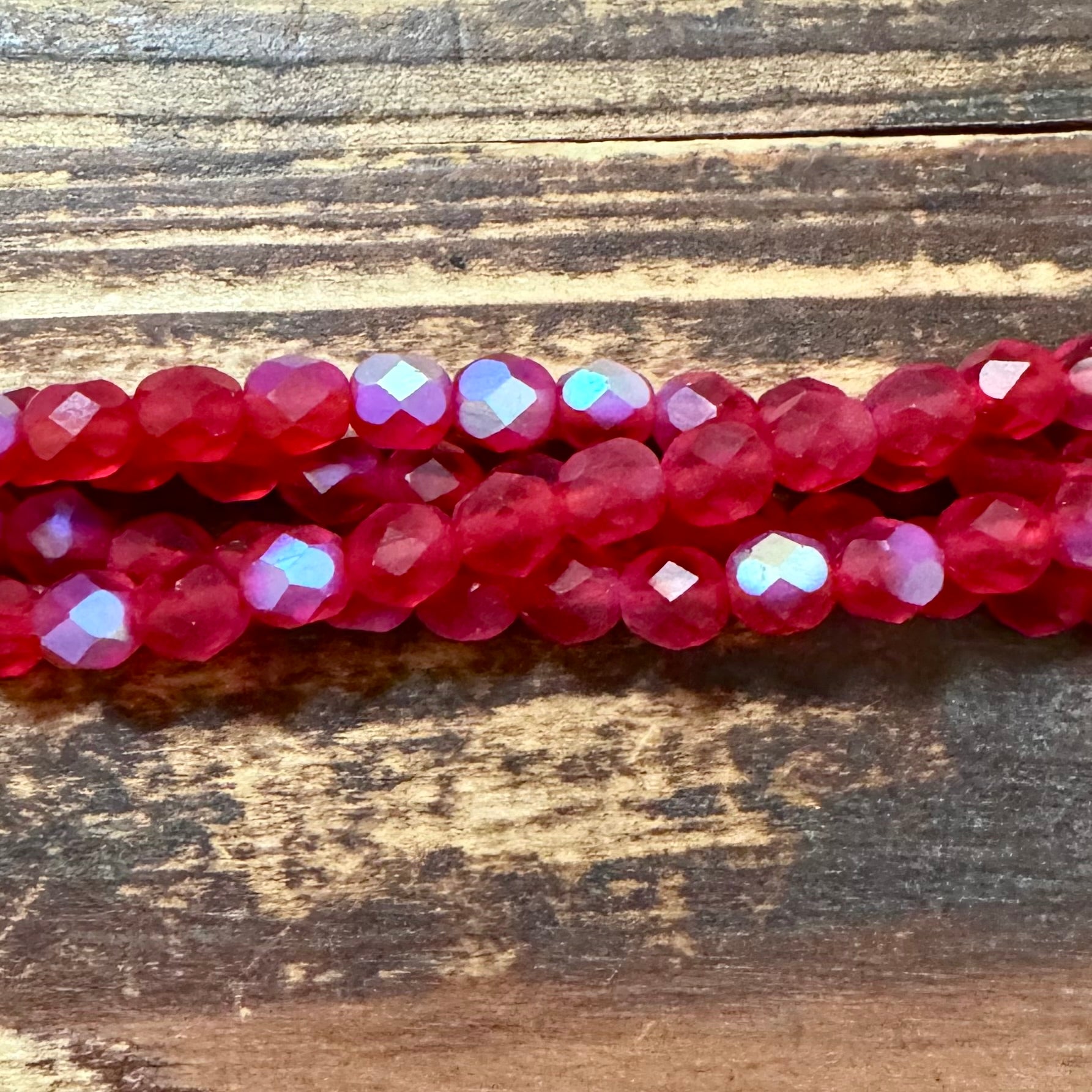 JKB-0876 - Czech Glass Fire Polish Beads, Cherry AB, 6mm | Strand