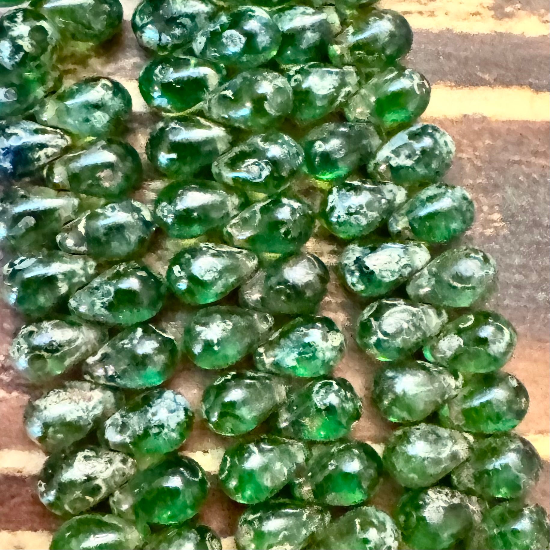 JKB-0884 - Czech Glass Teardrop Beads, Green Picasso, 5x9mm | Strand