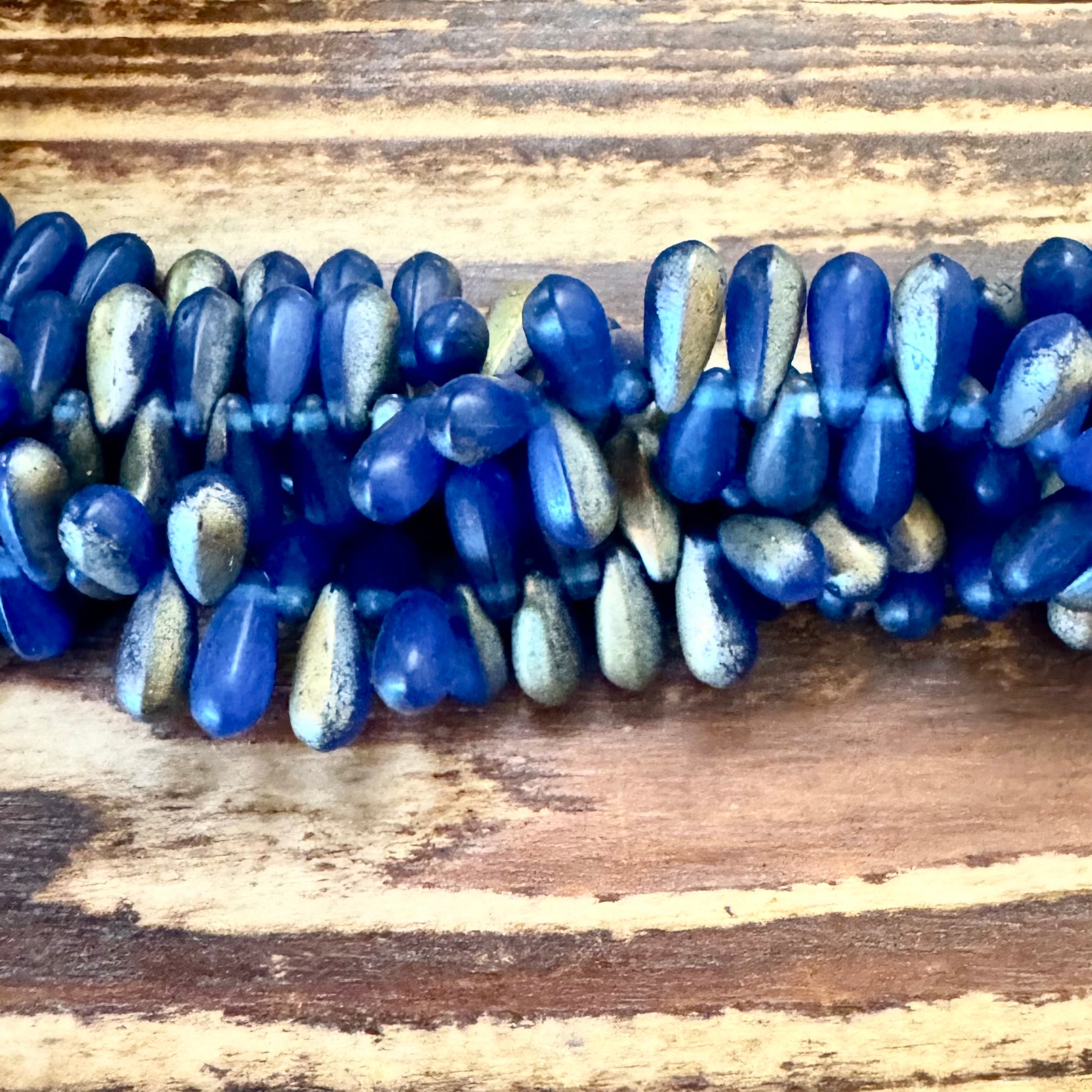JKB-0889 - Czech Glass Dagger Beads, Matte Sapphire/Copper, 4x9mm | Strand