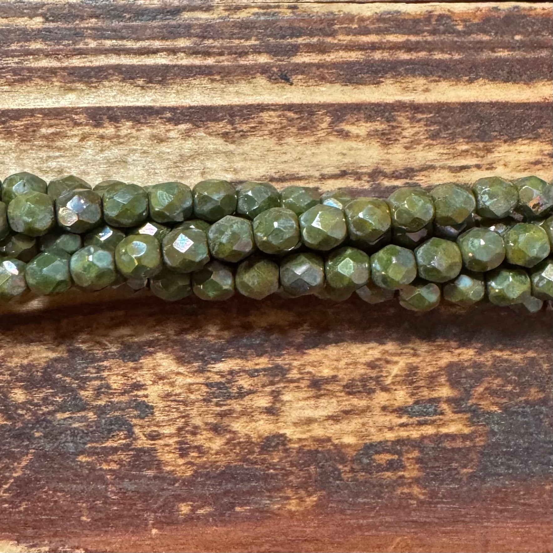 JKB-0900 - Czech Glass Fire Polish Beads, Opaque Forest Green, 4mm | Strand