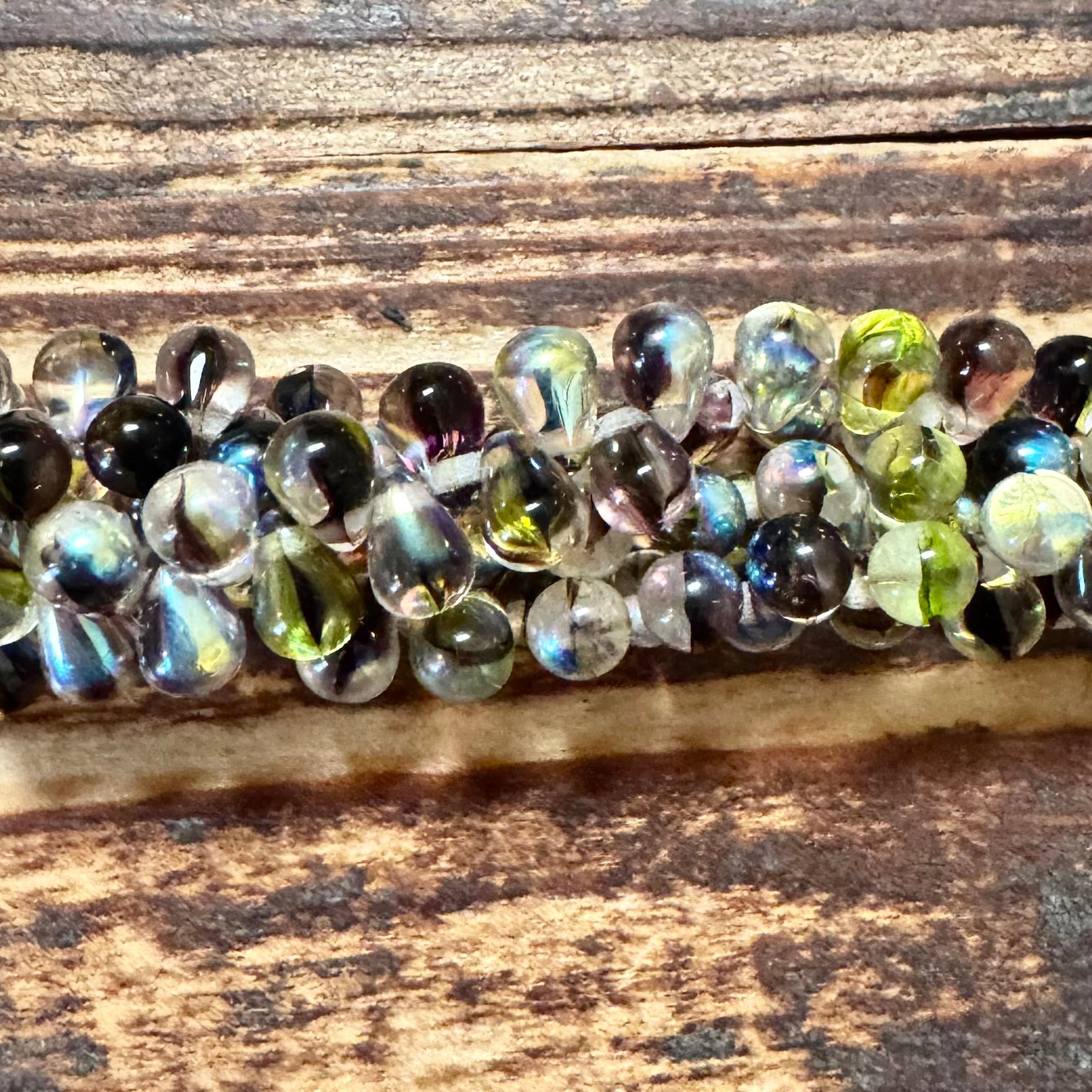 JKB-0902 - Czech Glass Teardrop Beads, Chocolate-Lemon AB, 4x7mm | Strand