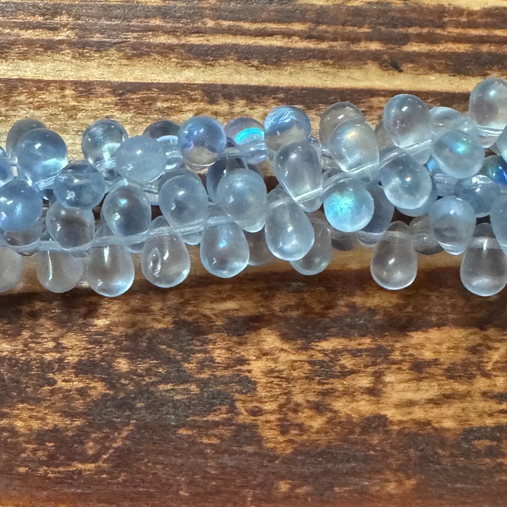JKB-0916 - Czech Glass Teardrop Bead Strand, Lt. Sapphire AB, 4x7mm | Strand