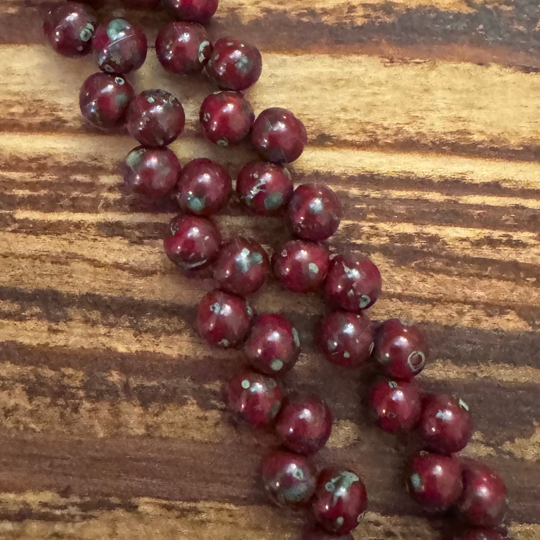 JKB-1124 - Czech Glass Top Drilled Beads, Red Picasso, 6mm | Strand