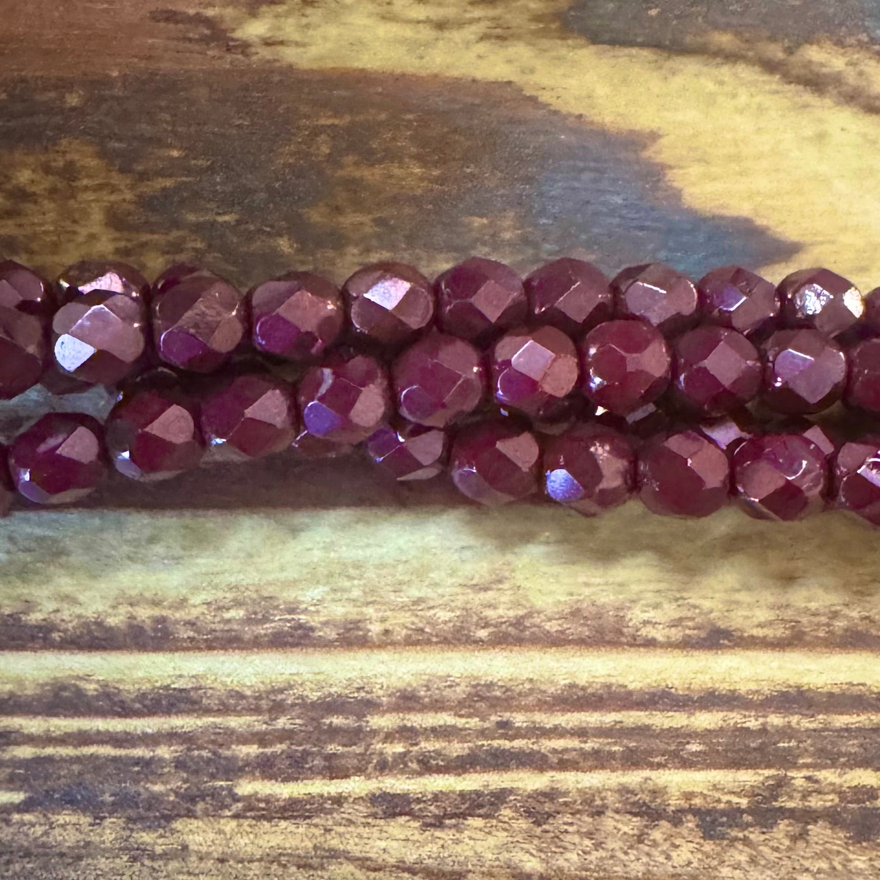JKB-1218 - Czech Glass Fire Polish Beads, Metallic Cranberry, 6mm | Strand