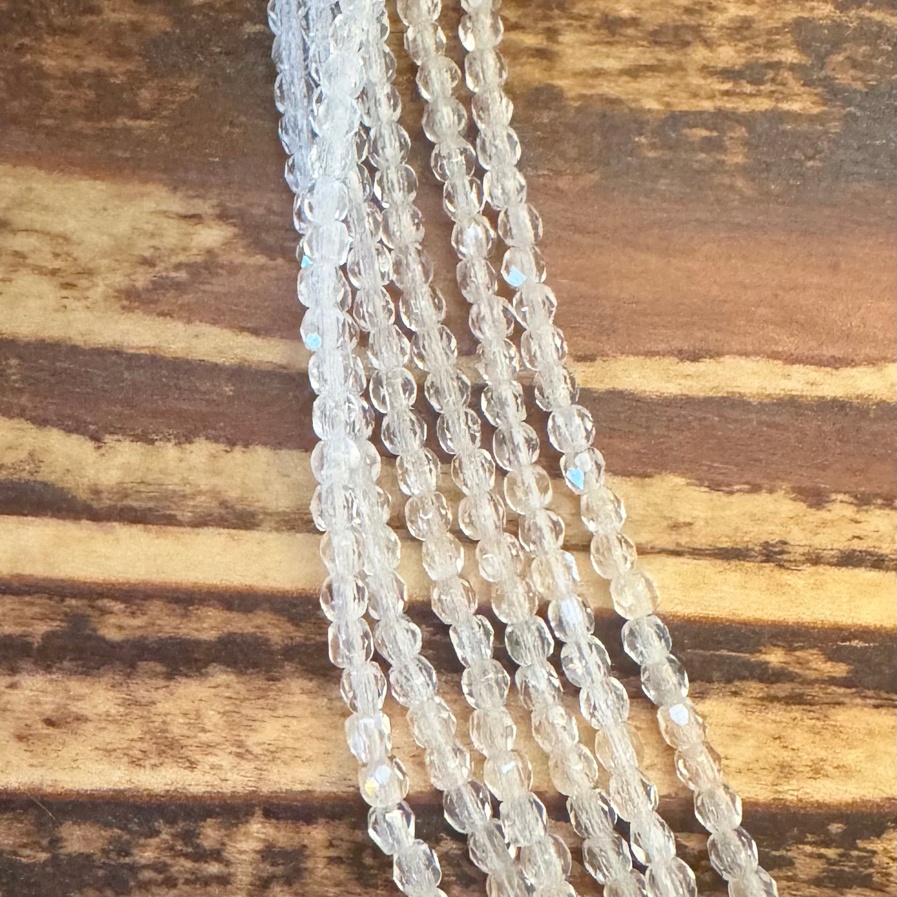 JKB-1229 - Czech Glass Fire Polish Beads, Crystal, 3mm | Strand