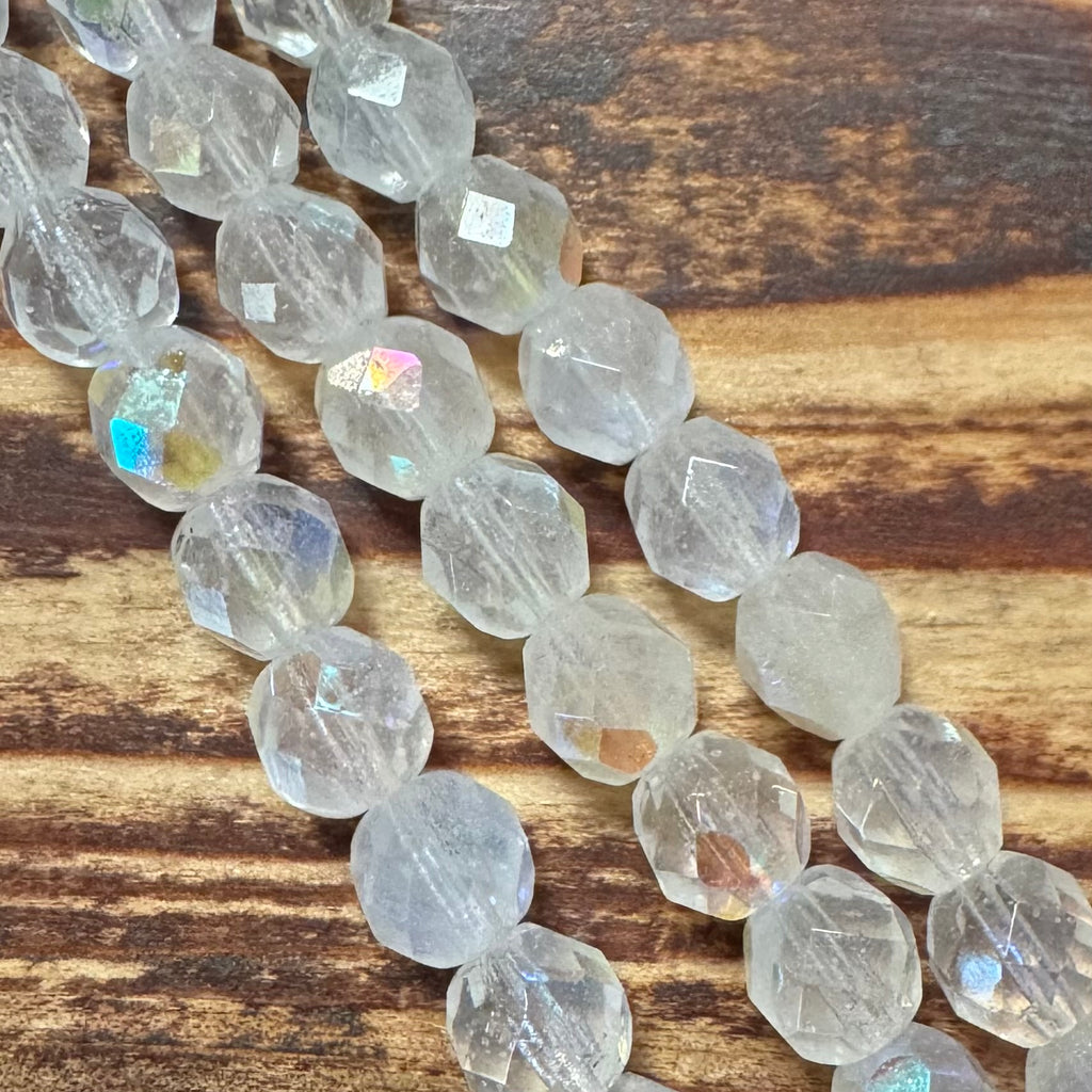 JKB-1072 - Czech Glass Fire Polish Beads, Milky Crystal AB, 8mm | Strand