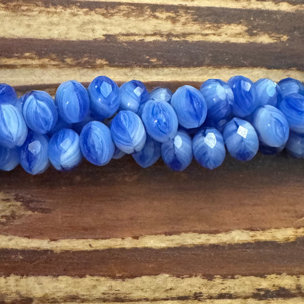 JKB-1107 - Czech Glass Faceted Rondelle Beads, Blue Swirl, 6x8mm | Strand