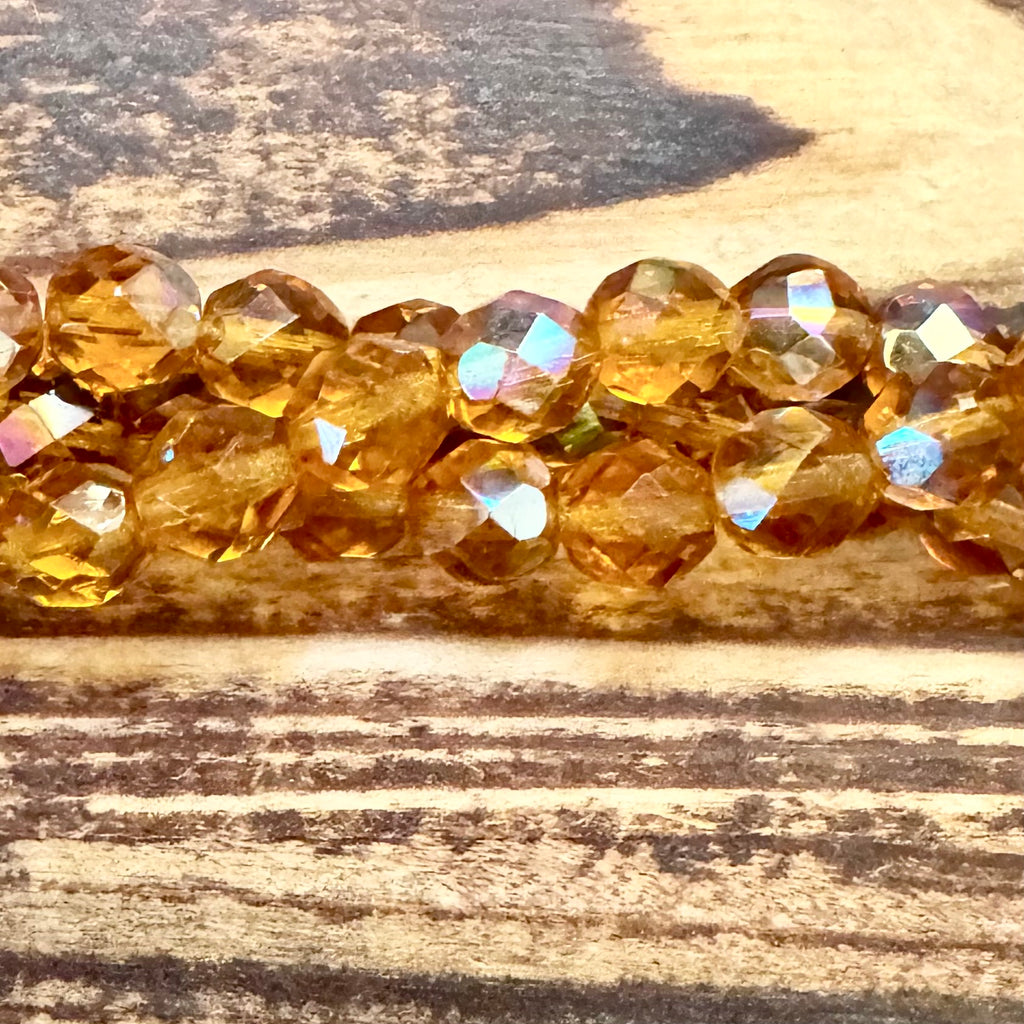 JKB-1120 - Czech Glass Fire Polish Beads, Dark Topaz AB, 8mm | Strand