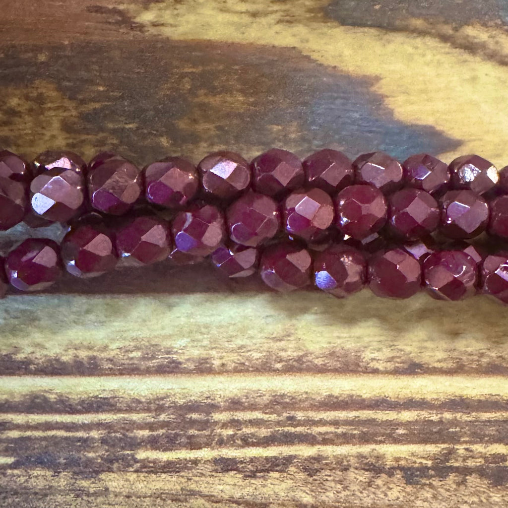 JKB-1218 - Czech Glass Fire Polish Beads, Metallic Cranberry, 6mm | Strand