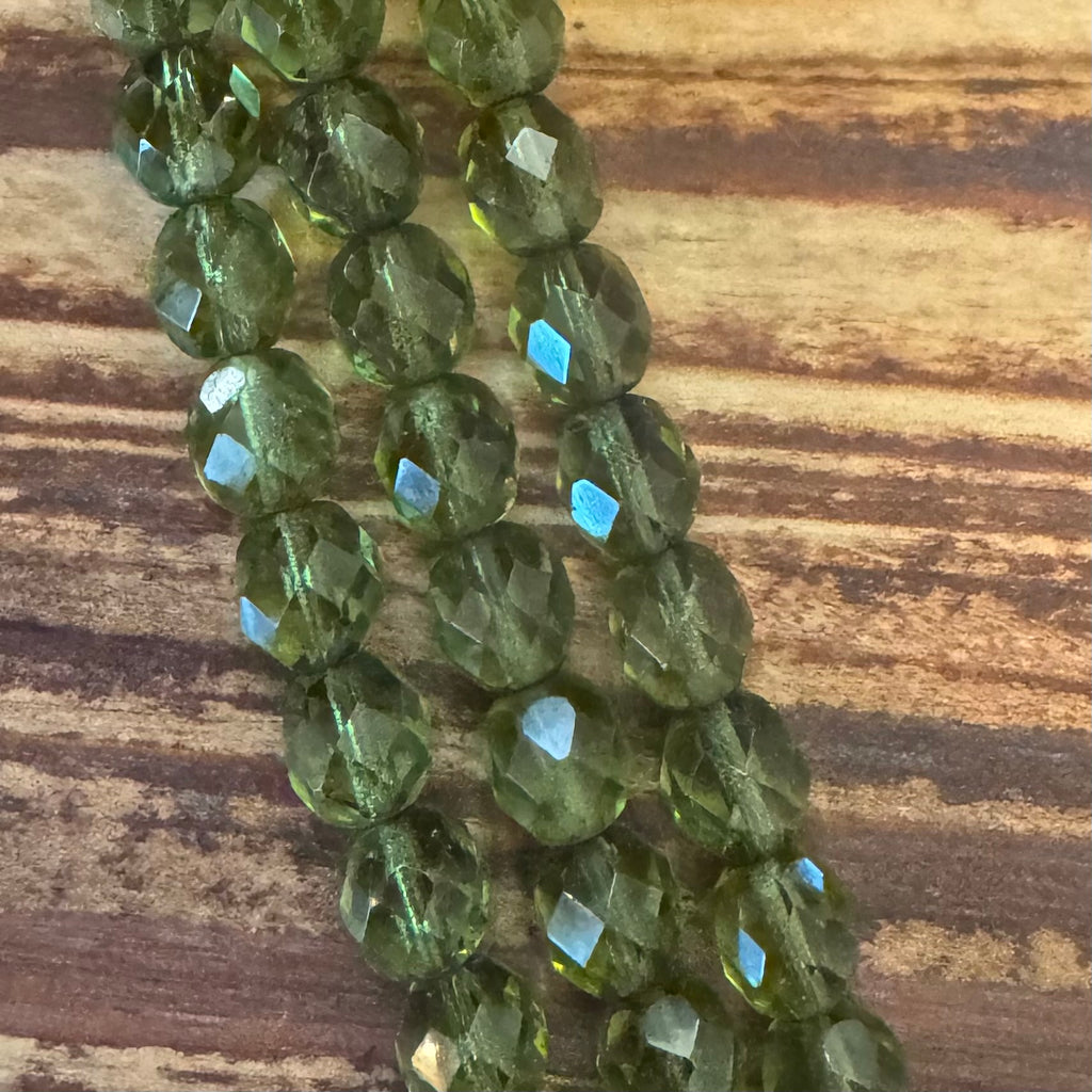 JKB-1221 - Czech Glass Fire Polish Beads, Olivine, 8mm | Strand