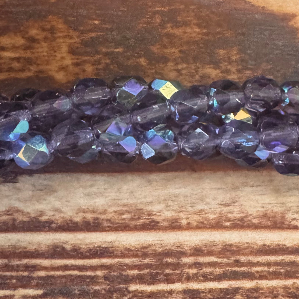 JKB-1222 - Czech Glass Fire Polish Beads, Amethyst AB, 8mm | Strand