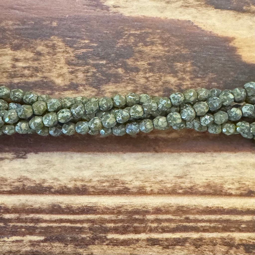 JKB-1223 - Czech Glass Fire Polish Beads, Army Green Picasso, 3mm | Strand