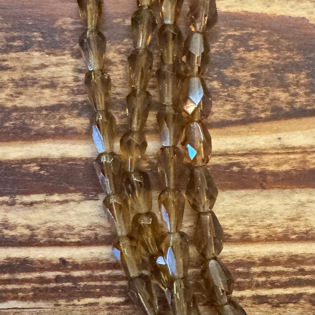 JKB-1224 - Czech Glass Faceted Teardrop Beads, Smokey Topaz, 4x7mm | Strand