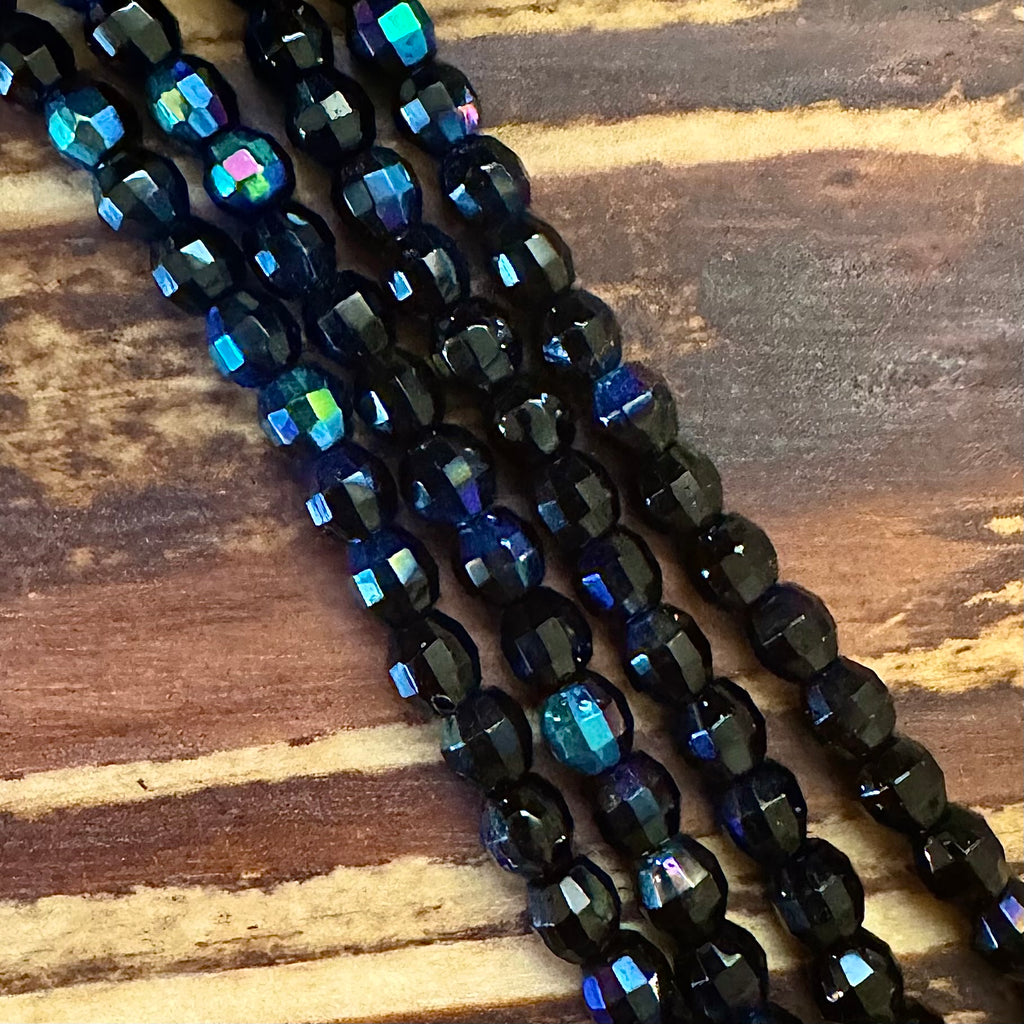 JKB-1225 - Czech Glass Faceted Globe Beads, Jet AB, 6mm | Strand
